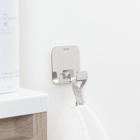 Tiger Colar Patère - 2 crochets - autocollante - acier inoxydable poli