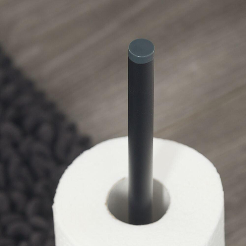 Le design minimaliste avec finition noire mate s'accorde parfaitement avec les salles de bains et les toilettes contemporaines. Les lignes droites et le format compact de 12,5x36x12,5 cm permettent de placer facilement le porte-rouleaux même dans les petits espaces sans que cela ne donne une impression de désordre. Grâce aux trois embouts fournis en noir, cuivre et gris, vous pouvez ajouter une touche de couleur subtile qui s'harmonise avec vos robinets, profils de paroi de douche ou autres accessoires. Vous créez ainsi facilement un ensemble calme et uniforme dans votre intérieur. Le caractère autoportant apporte en outre une ambiance d'hôtel de luxe : tout est rangé proprement, sans vis ni platines murales visibles.