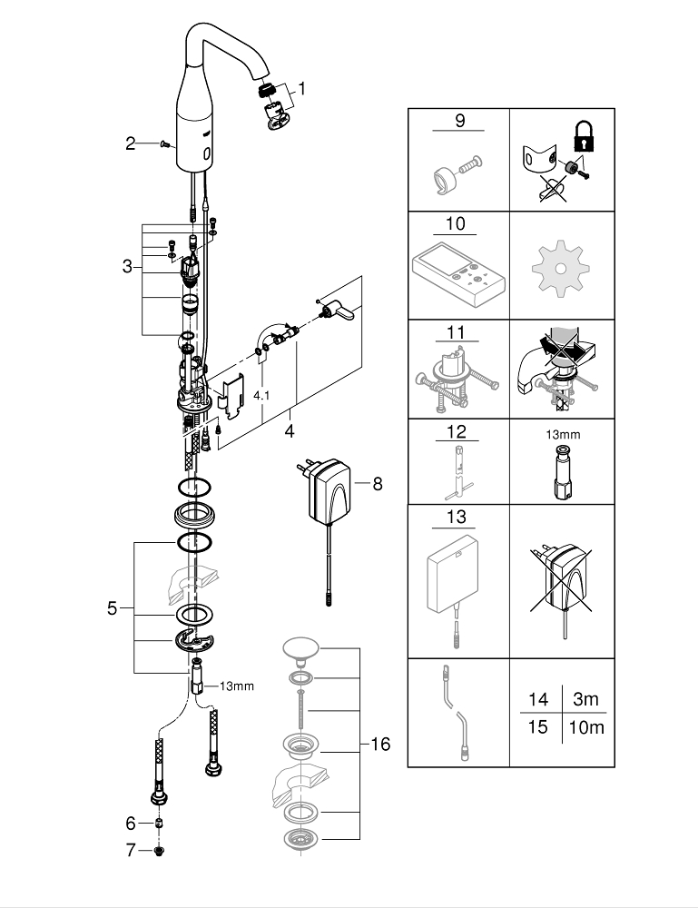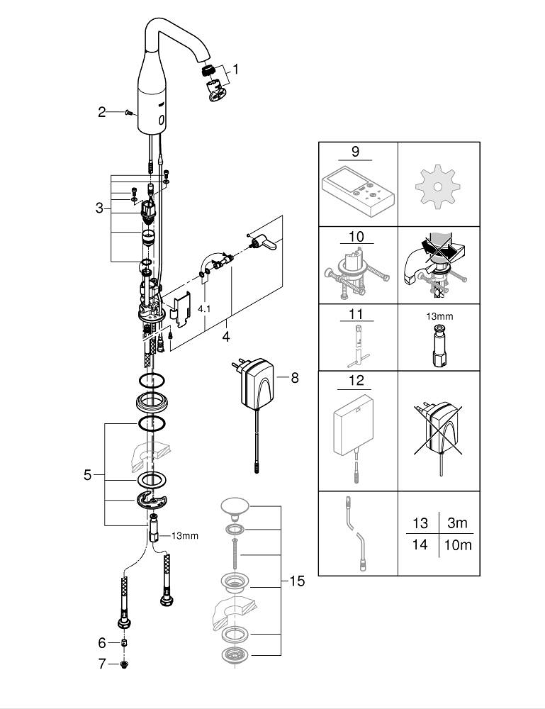 GROHE Essence Robinet de lavabo Pose sur plan - bec 12.7cm - électronique - Adaptateur - 230V - chrome