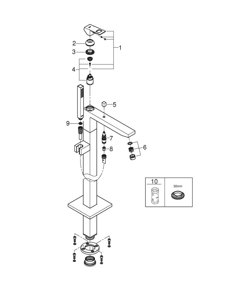 Le mitigeur de bain GROHE Eurocube à montage au sol crée un point de mire cubique saisissant pour les baignoires autoportantes Pour les amateurs de design moderne et épuré qui souhaitent donner un caractère distinctif à leur cuisine ou salle de bains, GROHE a conçu la série Eurocube. Grâce au design primé et à la célèbre technologie allemande de GROHE, les mitigeurs de cuisine, mitigeurs de salle de bains, douches et accessoires présentent véritablement un design carré. Faites une véritable déclaration de style avec GROHE Eurocube.