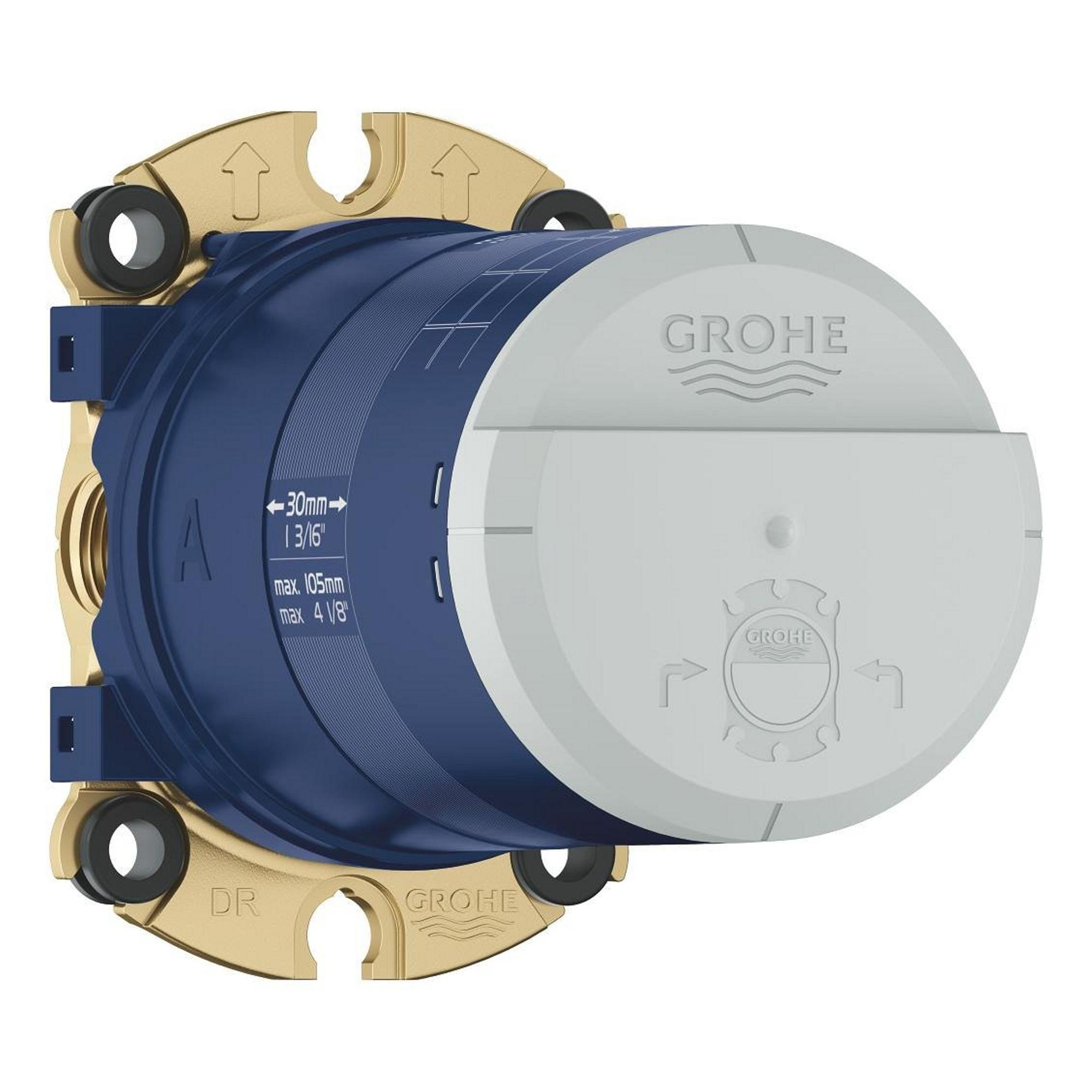 La boîte d'encastrement universelle GROHE Rainshower est la base parfaite pour une installation de tête de douche. Avec une construction solide et étanche, cette boîte d'encastrement offre une solution fiable pour une finition soignée et professionnelle de votre système de douche. Grâce aux matériaux de haute qualité et aux facilités d'installation bien pensées, il s'agit d'un choix essentiel tant pour les projets de rénovation que de construction neuve.Conception durable et fiable Cette boîte d'encastrement est fabriquée en laiton de haute qualité, ce qui garantit une longue durée de vie et une excellente résistance à la corrosion. Le boîtier robuste et le couvercle protègent les composants internes et garantissent une installation sûre. Grâce au bouchon de rinçage intégré, le système se rince facilement avant le montage final, ce qui assure une installation propre et efficace.