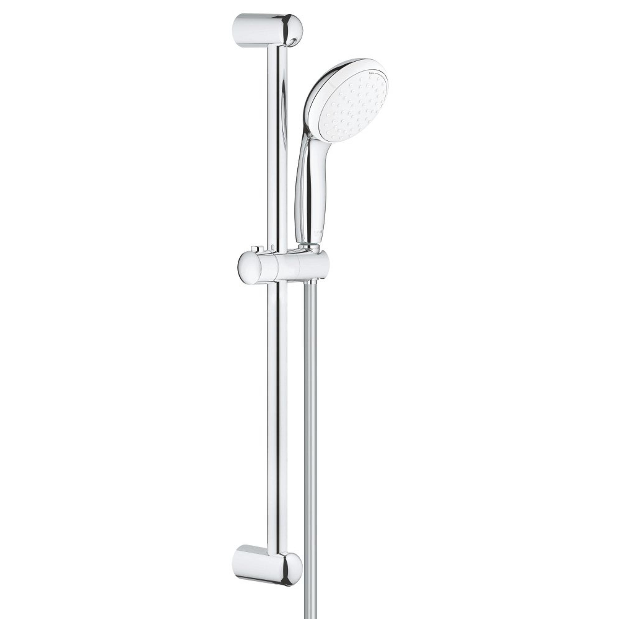 GROHE New Tempesta 100 Ensemble barre de douche - 60cm - douchette à main ronde - 2 types de jets - flexible de douche lisse - chrome/blanc