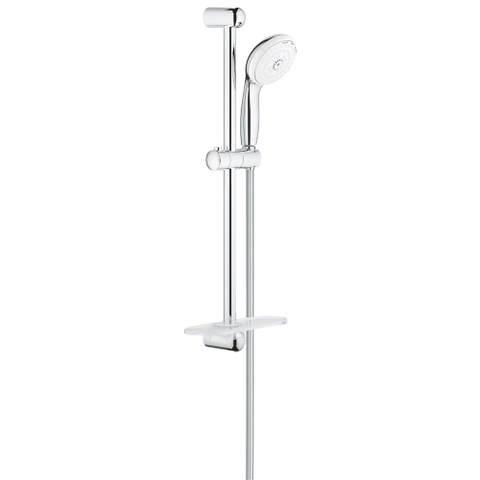 - Ensemble complet GROHE New Tempesta 100 Ensemble barre de douche - 60cm - douchette ronde - 3 types de jets - flexible de douche lisse - avec porte-savon - chrome/blanc pour douche et salle de bains