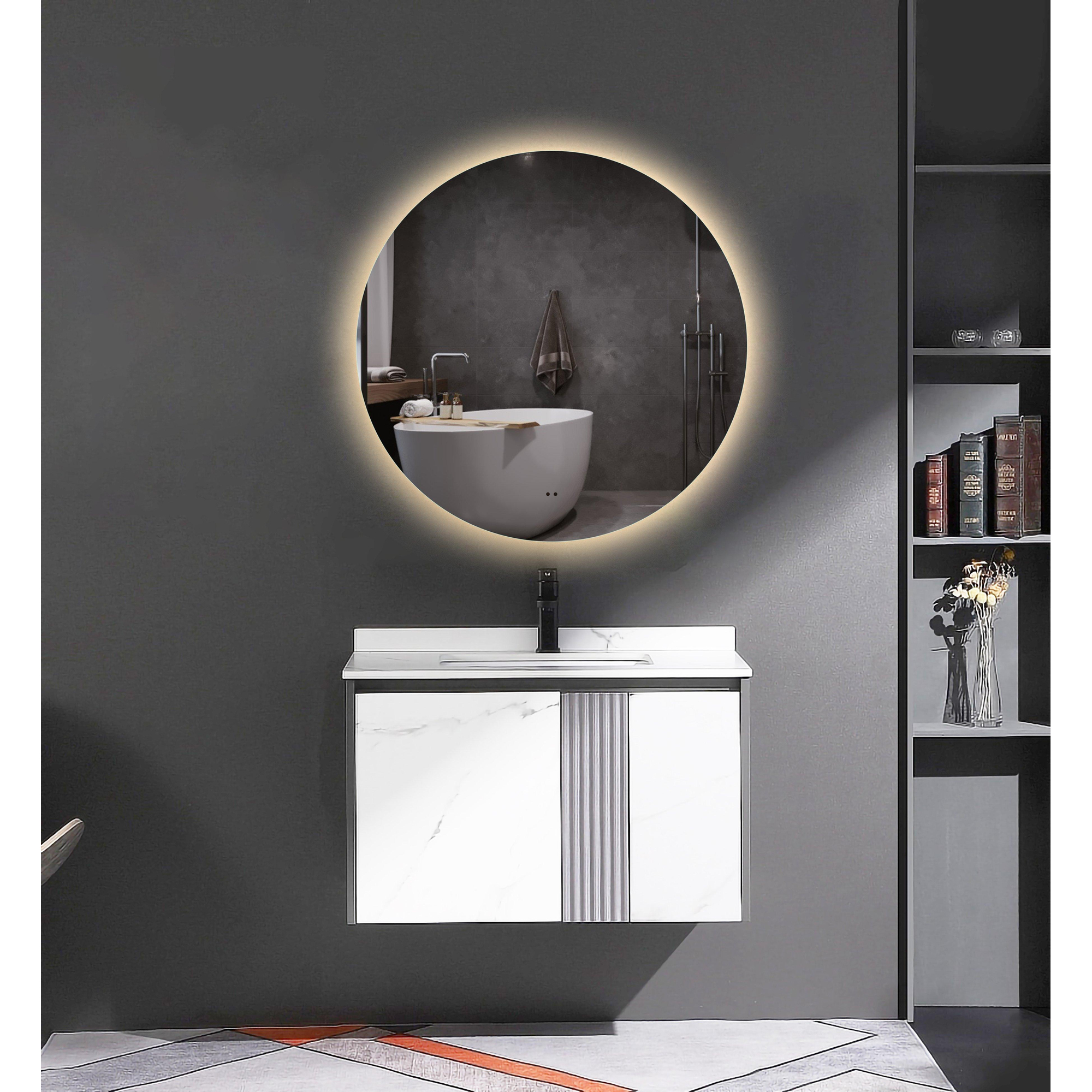 Ce miroir se distingue immédiatement par sa forme ronde élégante et sa finition de haute qualité avec verre argenté brillant et aluminium. Le design est intemporel et s’intègre facilement dans les salles de bains modernes comme classiques. L’éclairage LED indirect autour du miroir crée une ambiance subtile et chaleureuse qui donne à votre salle de bains une apparence luxueuse. Vous bénéficiez ainsi non seulement d’une lumière fonctionnelle, mais aussi d’un véritable point focal qui enrichit l’espace. Les lignes épurées et le design minimaliste font de ce miroir un ajout élégant qui donne une touche personnelle à votre salle de bains.