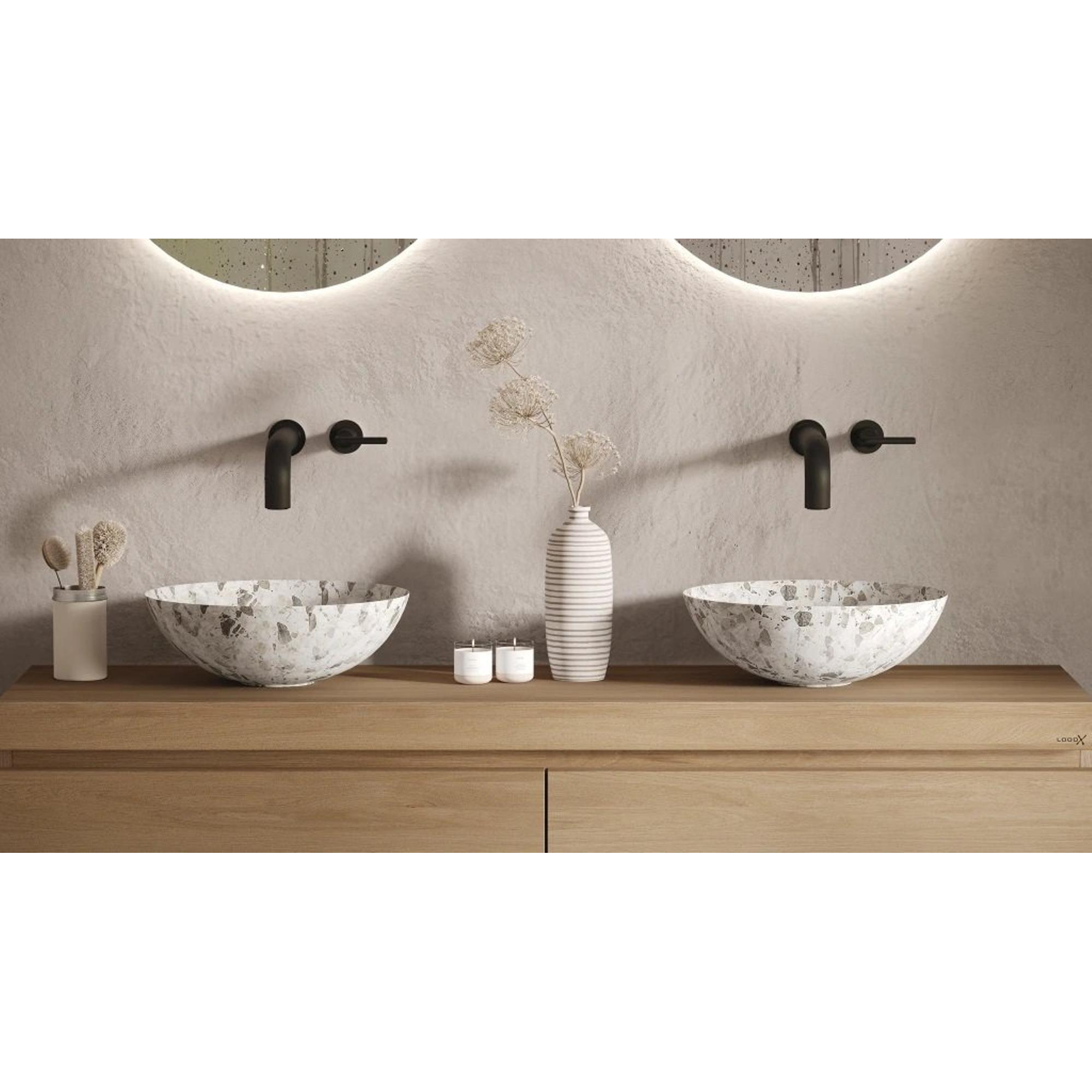 Grâce aux façades sans poignées avec prises intégrées, ce meuble a un aspect minimaliste et apaisant, sans poignées saillantes contre lesquelles vous pourriez vous cogner. Le montage mural permet au meuble de flotter au-dessus du sol, ce qui donne à la pièce une apparence plus grande et plus légère et facilite grandement le nettoyage en dessous. Avec ses dimensions de 160x45x46 cm, ce meuble s’adapte parfaitement aux plans de lavabo larges ou aux vasques doubles, tandis que les lignes épurées et la texture du bois confèrent à votre salle de bains une apparence design haut de gamme.