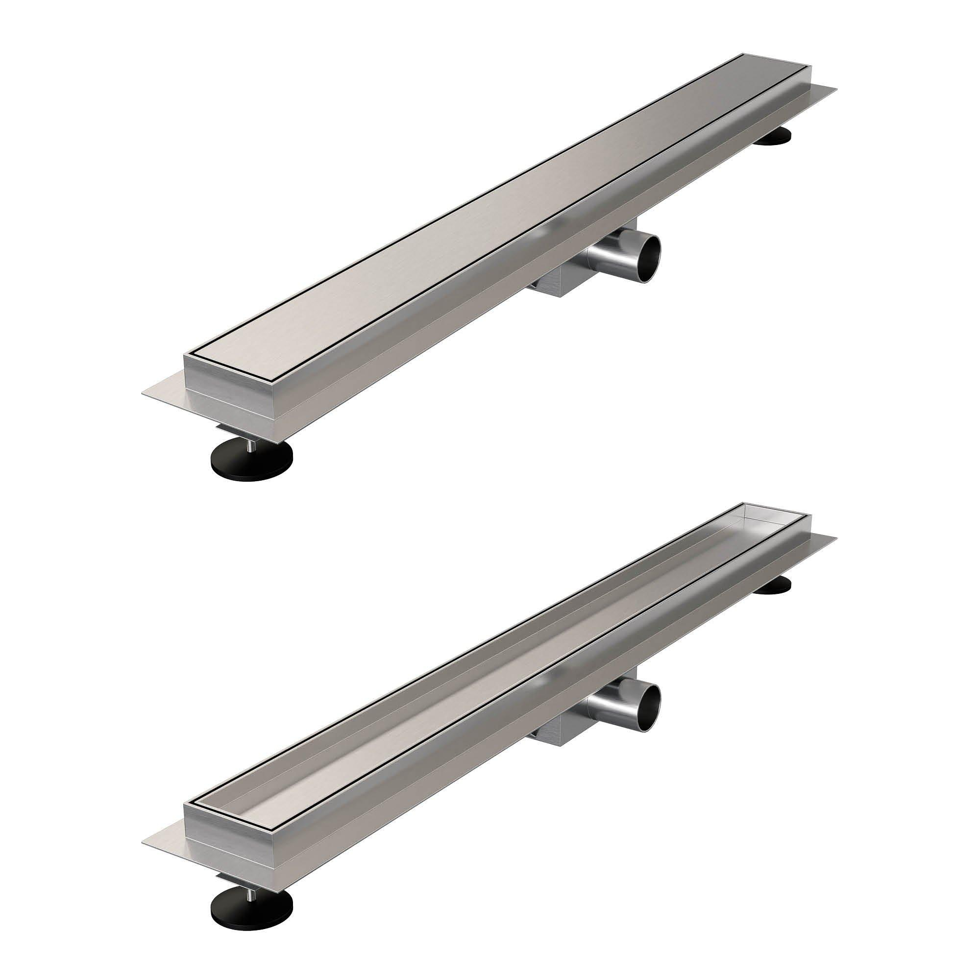 Brauer Caniveau de douche - 70x7x6.7cm - flasque de sol peu profonde - sortie latérale - grille de carrelage réversible - inox