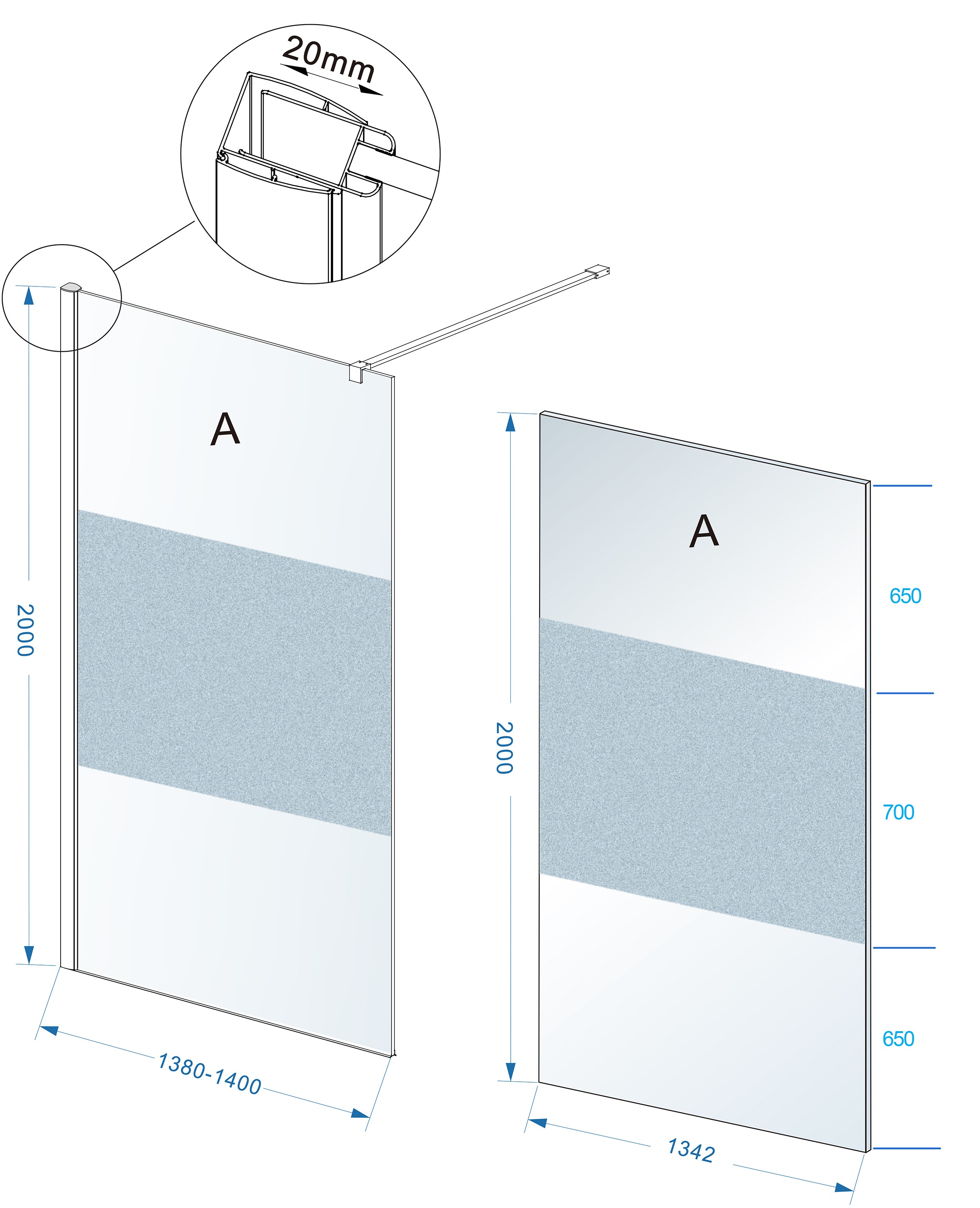 - Dimensions : 1400 x 2000 x 8 mm – format généreux pour une douche confortable