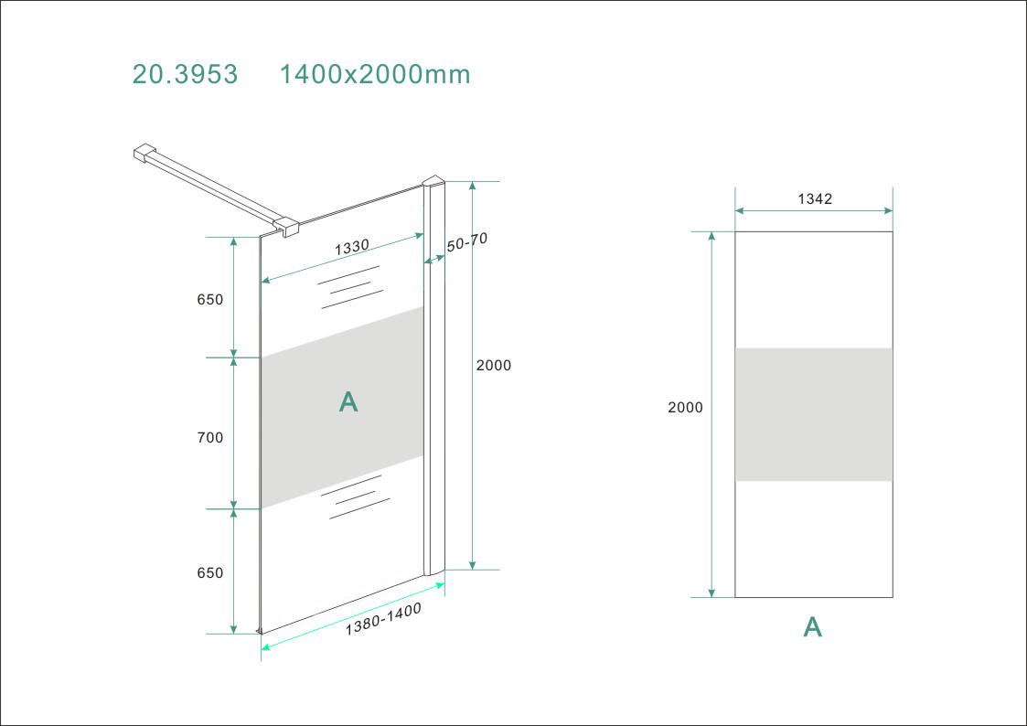 Wiesbaden Comfort douche à l'italienne 1400 x 2000 x 8 mm nano verre clair avec bandeau en verre opale/chrome