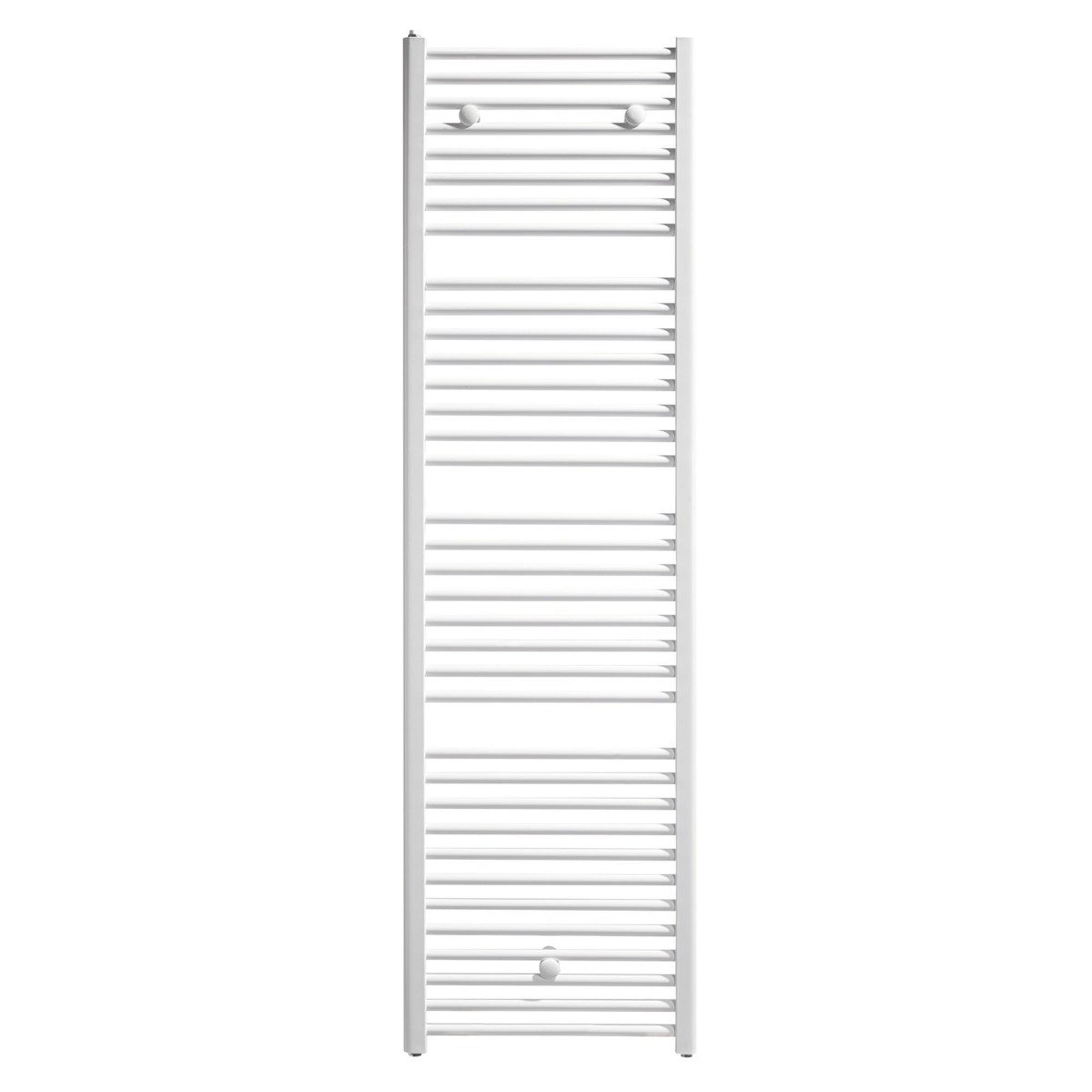 Vous cherchez une solution compacte et élégante pour chauffer agréablement votre salle de bains et sécher rapidement vos serviettes, mais vous ne disposez pas de beaucoup d’espace mural ? Alors ce radiateur porte-serviettes est un choix judicieux. Avec ses dimensions relativement modestes, il s’intègre parfaitement dans les petites salles de bains, les toilettes ou à côté de la douche, tout en offrant une puissance calorifique largement suffisante pour maintenir la pièce confortable. Les tubes droits et ronds offrent beaucoup de place pour les serviettes et le linge de bain, sans que le radiateur ne paraisse massif. La finition blanche brillante s’accorde parfaitement avec presque tous les styles de salle de bains : du classique intemporel au moderne épuré. Grâce aux multiples points de raccordement, il est en outre facile à installer, ce qui est pratique lors de rénovations ou lorsque vous souhaitez conserver les conduites existantes.