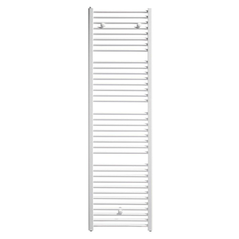 Le radiateur est réalisé en blanc brillant (RAL 9016), la couleur la plus utilisée dans les salles de bains. Il se combine donc facilement avec la céramique blanche, les meubles blancs et les robinets chromés. La finition laquée et lisse se nettoie aisément avec un chiffon doux, de sorte que la poussière et le calcaire ont peu de chances d’adhérer. Grâce aux six raccordements 1/2", dont un raccordement central en bas, vous disposez d’une grande liberté pour le raccorder à votre installation de chauffage central. C’est particulièrement pratique lorsque les conduites sont déjà en place ou lorsque vous remplacez un ancien radiateur et souhaitez réutiliser les raccordements existants. Vous gardez ainsi une installation efficace et souvent plus économique.