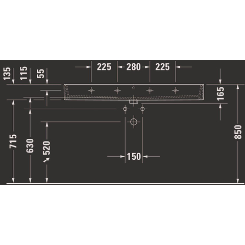- Large lavabo d’environ 120x47 cm : idéal comme double lavabo dans les salles de bains familiales et design.