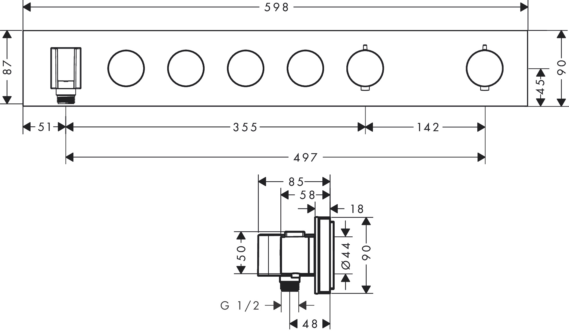 Axor ShowerControl Robinet de douche thermostatique encastrable 59.8x90cm 4 voies chrome