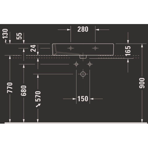 - Équipé d’un trou de robinetterie central, adapté à la plupart des robinets de lavabo standards.