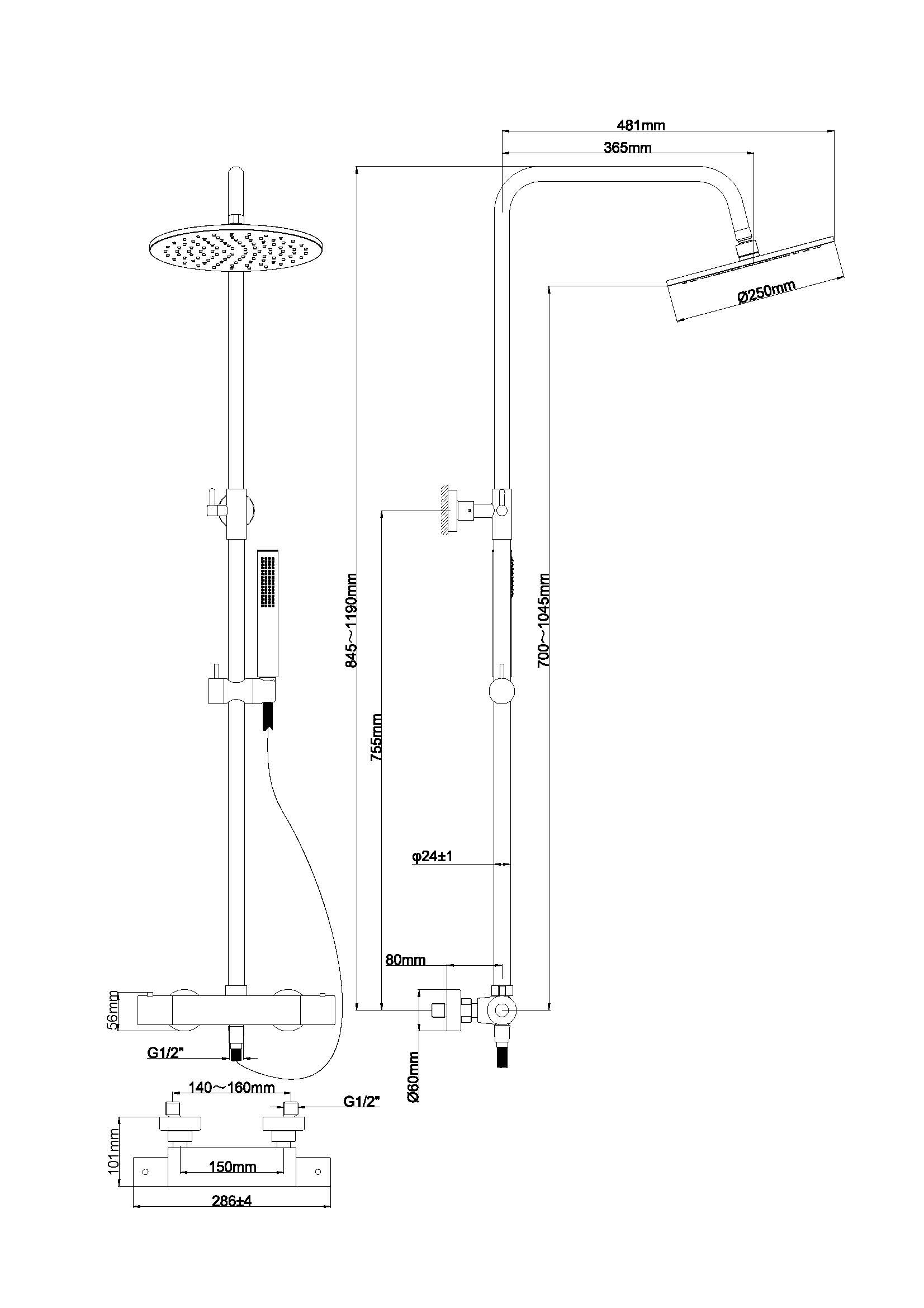 | Largeur douchette | 25 cm |