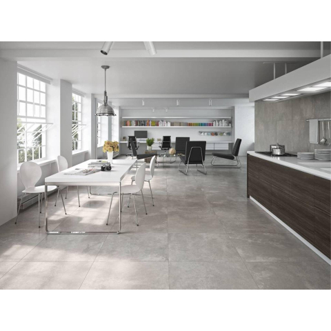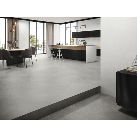 Avec sa polyvalence, ce carreau peut être utilisé aussi bien dans les salles de bain que dans les cuisines, créant ainsi un style cohérent dans tout l'espace. La couleur grise mate ajoute une touche d'élégance, tandis que l'aspect béton confère une allure contemporaine à chaque environnement.