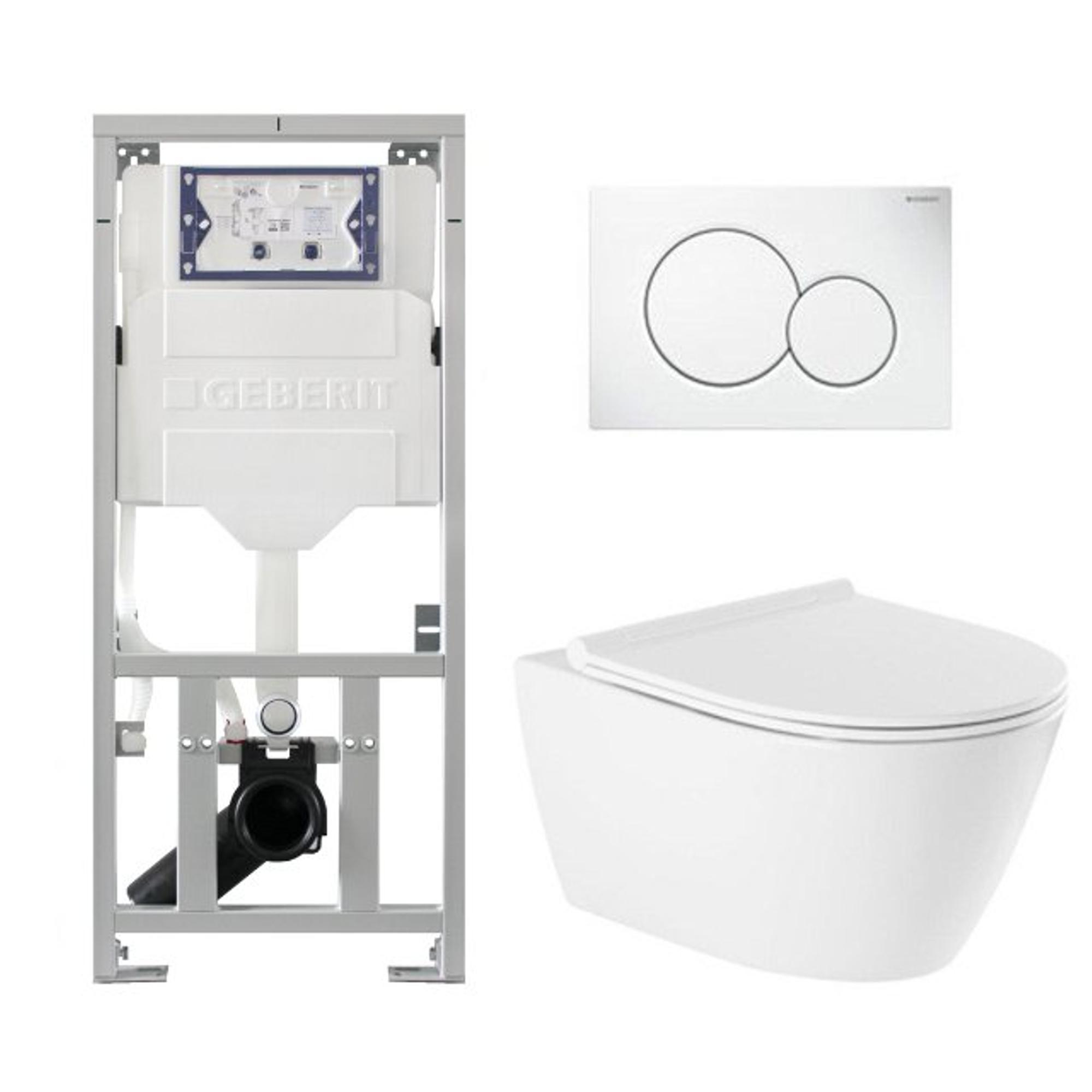 QeramiQ Salina Pack WC - sans bride - à fond creux - fermeture douce - abattant à déclipsage - plaque de commande Geberit Sigma20 en inox brossé - blanc