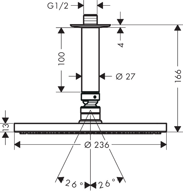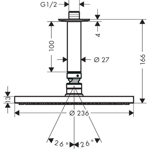 Hansgrohe Raindance select p 1jet powderrain pomme de douche plafond avec raccord chrome