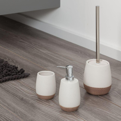 La douce couleur sable et la structure de corde perceptible au toucher sur la partie inférieure créent ensemble un look chaleureux et rustique. Vous créez ainsi facilement une atmosphère paisible et naturelle dans votre salle de bains, vos toilettes ou votre cuisine, sans que l’ensemble paraisse chargé. La combinaison de deux nuances de sable offre juste assez de contraste pour se faire remarquer, tout en restant intemporelle et facile à associer avec d’autres accessoires en céramique, en bois ou en osier. Vous pouvez ainsi composer le style de votre lavabo étape par étape et garder un bel équilibre, même si vous ajoutez plus tard d’autres couleurs ou matériaux.