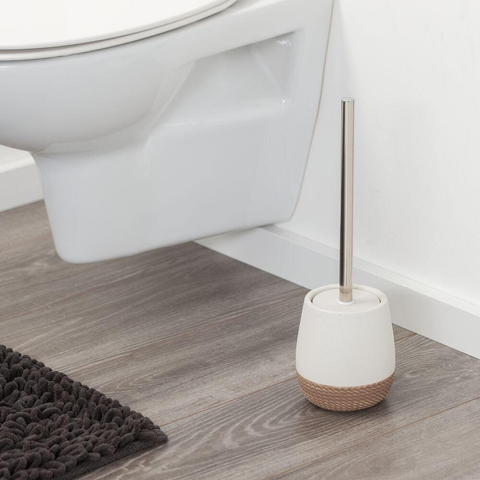 Avec cette brosse de toilette élégante avec support, vous apportez chez vous une touche subtile qui s’intègre parfaitement dans un espace toilettes ou une salle de bains chaleureux et campagnard. Grâce à la combinaison de deux douces nuances de sable et à la structure de corde palpable sur la partie inférieure, l’ensemble n’est pas seulement décoratif, mais procure également une sensation de luxe surprenante. Cet accessoire trouve particulièrement bien sa place dans les petits espaces toilettes où chaque centimètre compte, mais il est tout aussi adapté pour créer une atmosphère calme et naturelle dans une salle de bains plus grande. Si vous recherchez une brosse de toilette autoportante à la fois pratique et esthétique, sans être trop voyante, c’est un choix judicieux. Grâce à son format compact, elle se place facilement à côté des toilettes et se combine sans effort avec d’autres matériaux naturels comme le bois, l’osier et la céramique.
