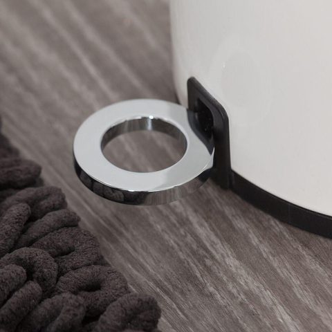 La combinaison d’une commande par pédale et d’un couvercle softclose assure un fonctionnement agréable et silencieux. Vous ouvrez la poubelle avec le pied, ce qui vous permet de garder les mains propres et de limiter les contaminations croisées par les bactéries. La fonction softclose fait se refermer le couvercle lentement et sans bruit, ce qui n’est pas seulement confortable mais évite aussi qu’il ne claque violemment ou n’endommage le bord. Le couvercle possède un angle d’ouverture généreux, de sorte que les déchets ne frottent pas contre le bord et que l’intérieur reste propre plus longtemps. Cela rend cette petite poubelle à pédale particulièrement adaptée aux foyers soucieux d’hygiène et à ceux qui attachent de l’importance à une expérience de salle de bains calme et silencieuse.