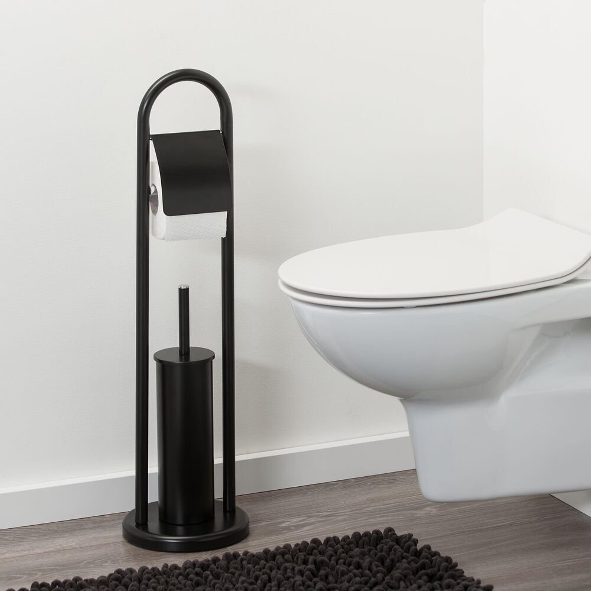 Avec ce serviteur de toilettes autoportant, vous créez en une seule fois de l’ordre et du confort autour des toilettes, sans devoir percer le moindre trou. Idéal si vous ne souhaitez pas endommager vos carreaux, si vous habitez une location ou si vous venez de donner un coup de fraîcheur à vos toilettes. La combinaison d’une brosse de toilettes avec support et d’un porte-rouleau pratique fait de cet ensemble une solution intelligente tout-en-un, aussi bien pour les petits WC que pour les grandes salles de bains. La forme élancée noire s’intègre aisément dans les intérieurs modernes, industriels et minimalistes, mais trouve également parfaitement sa place dans un style plus intemporel ou scandinave. Grâce à la liberté de placement, vous le mettez exactement là où vous le trouvez pratique : à côté des toilettes, dans une niche ou près d’un mur. Vous gardez ainsi vos toilettes bien organisées, élégantes et fonctionnelles, sans tracas de montage ni points de fixation permanents.Confort autoportant sans perçage