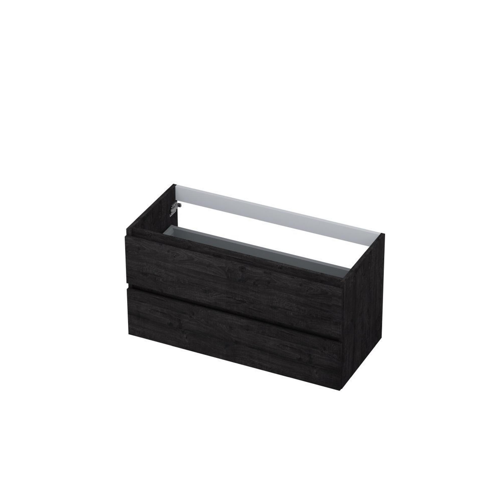 INK Meuble sous-lavabo - 100x45x52cm - 2 tiroirs - sans poignées - bordure en bois - MFC Chêne charbon