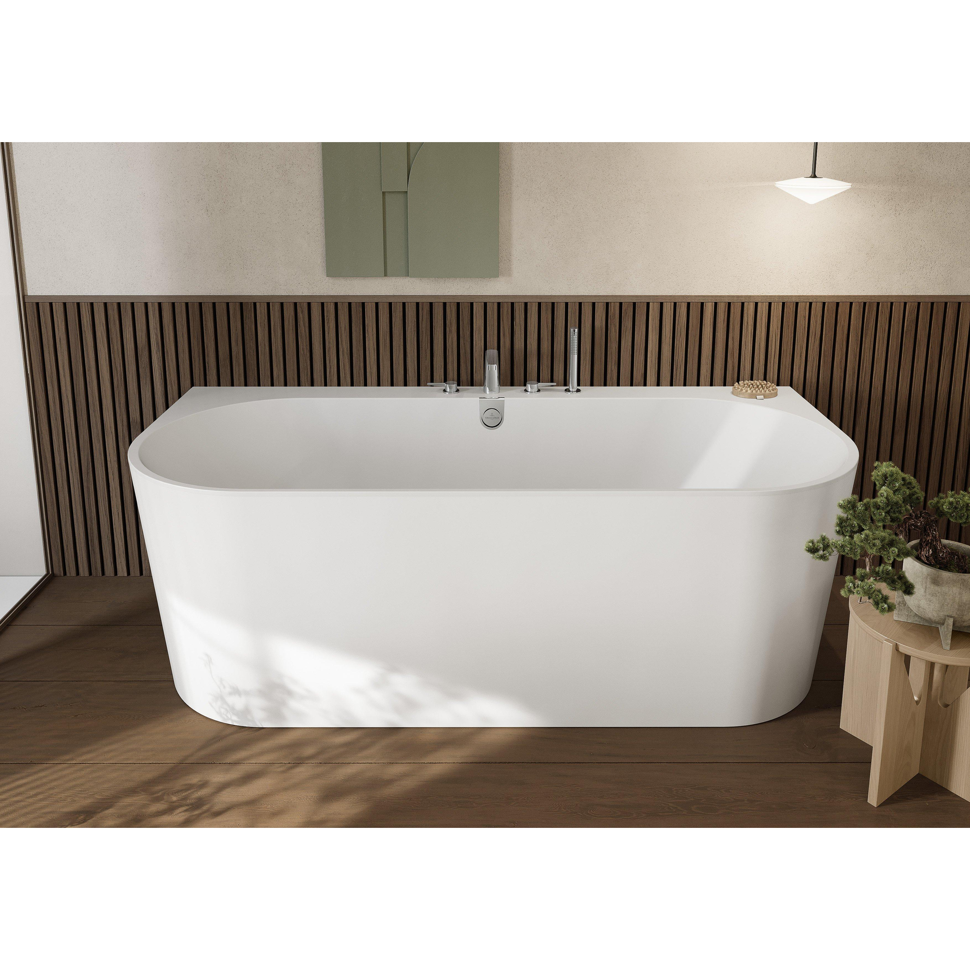 Cette baignoire semi-autoportante est idéale si vous voulez le look d’une baignoire autoportante, mais devez tenir compte de l’espace disponible et de la position des conduites. L’arrière droit vient s’aligner proprement contre le mur, tandis que le côté visible présente une élégante courbe ovale qui donne immédiatement à votre salle de bains une allure luxueuse. Les bords fins et les rayons particulièrement réduits créent une image minimaliste et moderne qui se marie à merveille aussi bien avec des carrelages épurés qu’avec des matériaux naturels chaleureux. Grâce à la couleur alpine white, la baignoire paraît lumineuse et fraîche, et devient un point focal intemporel dans presque toutes les ambiances de salle de bains, du style scandinave lumineux au style hôtel chic.