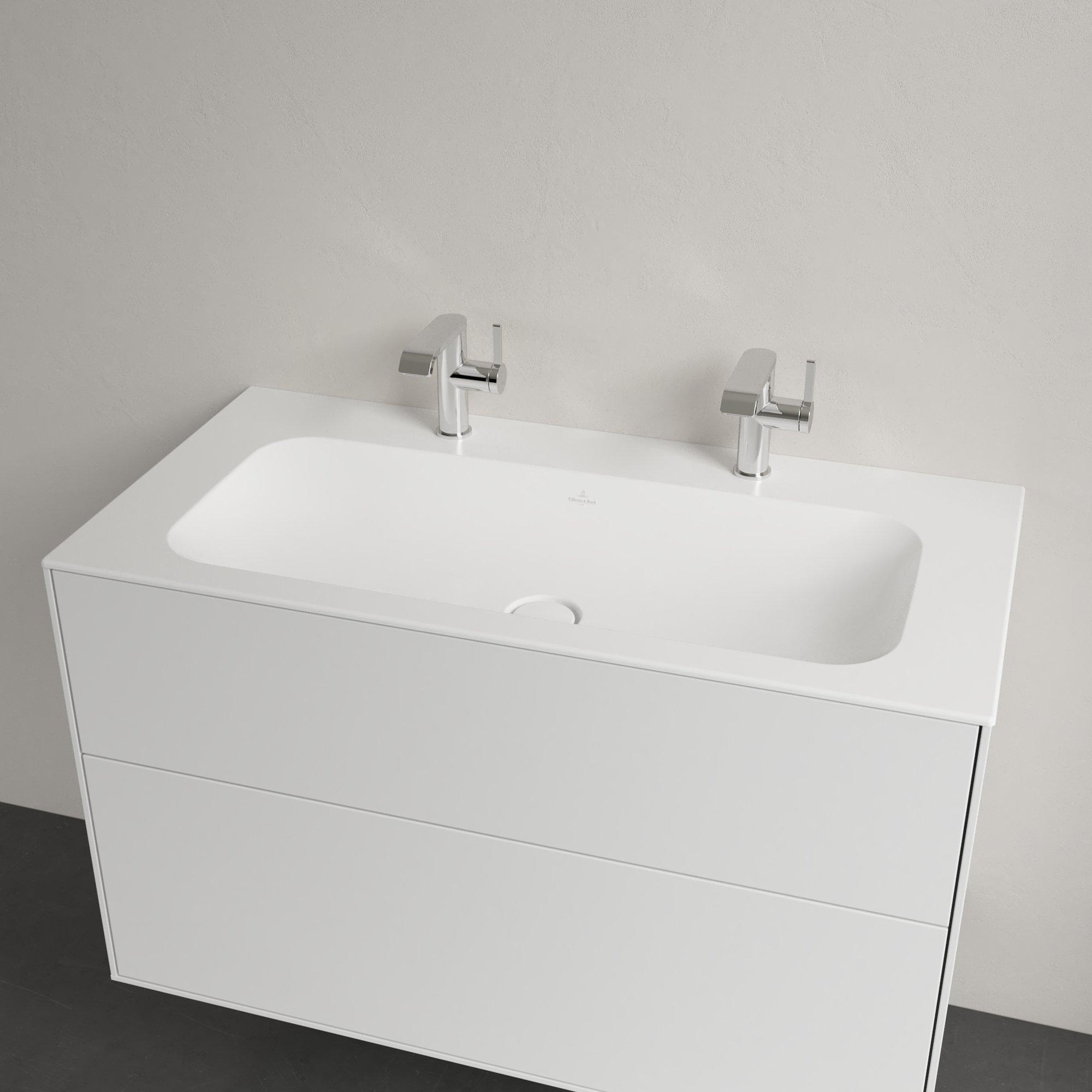 Villeroy & Boch Finion lavabo meuble - avec 2 trous de robinet 100x50cm - Ceramic+ sans trop-plein stone white
