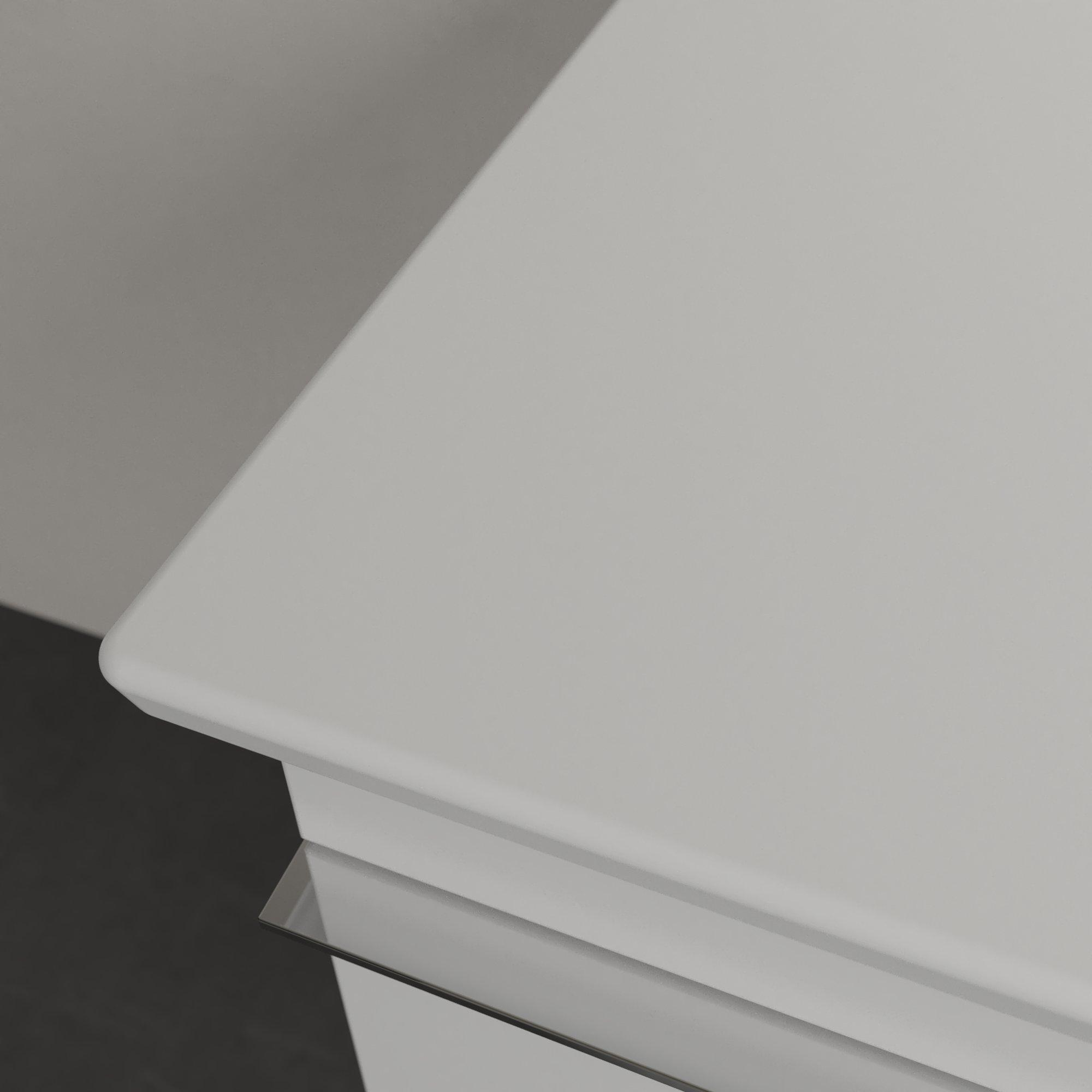 - Surface stone white mate avec TitanGlaze : extrêmement résistante et parfaitement adaptée à un style de salle de bains contemporain.