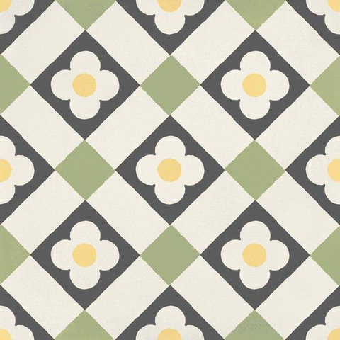 Le motif joyeux Funflowers en lime et doux accents de couleur crée immédiatement une atmosphère chaleureuse et du caractère. Grâce au format carré de 19,7x19,7 cm, vous pouvez facilement varier : posez les carreaux en tapis dans un sol sobre aspect béton ou bois, habillez un mur entier pour une déclaration marquée ou utilisez-les subtilement comme accent de bordure ou de niche. La finition mate évite les reflets gênants et met joliment en valeur le dessin, même sous un éclairage artificiel. Vous créez ainsi en un clin d’œil un sol ou un mur en carrelage à motifs unique qui donne juste ce petit plus à votre salle de bains, vos toilettes ou votre cuisine, sans que cela ne devienne chargé ou criard.