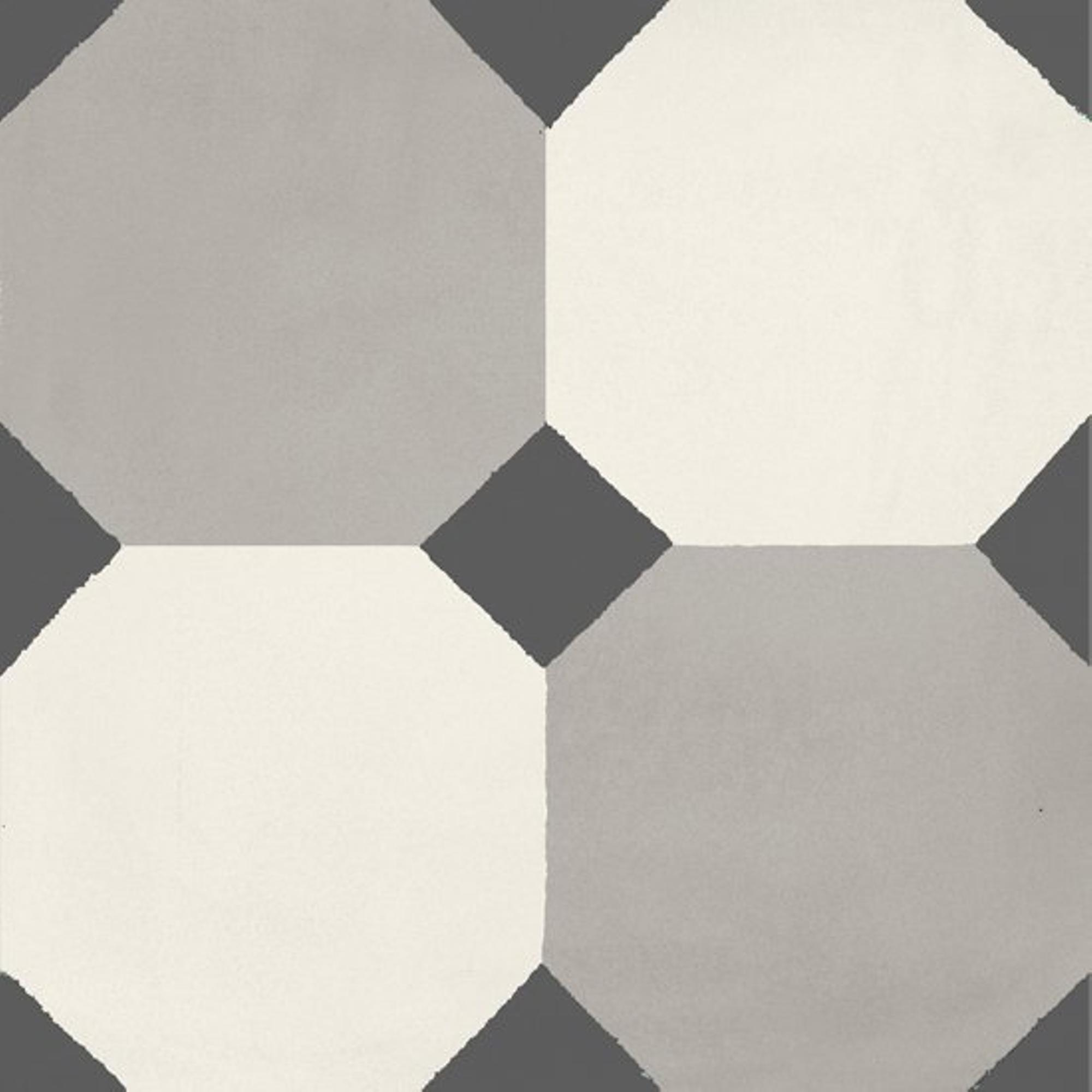 Le motif à 8 côtés en noir donne immédiatement à votre espace une signature reconnaissable. Dans une salle de bains claire, le dessin sombre crée un contraste puissant, tandis que dans une ambiance robuste et industrielle, il s’harmonise parfaitement avec les robinets et accessoires noirs. Grâce au format d’environ 20x20 cm, vous pouvez facilement jouer avec le sens de pose, la répartition des surfaces et les combinaisons avec des carreaux unis. Vous créez ainsi un sol avec profondeur et dynamisme, sans avoir recours à des motifs compliqués. Ce carreau décoratif convient parfaitement à ceux qui souhaitent un peu plus qu’un simple carreau de sol standard, tout en conservant une base intemporelle que vous trouverez belle pendant des années.