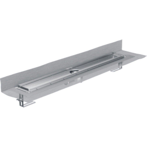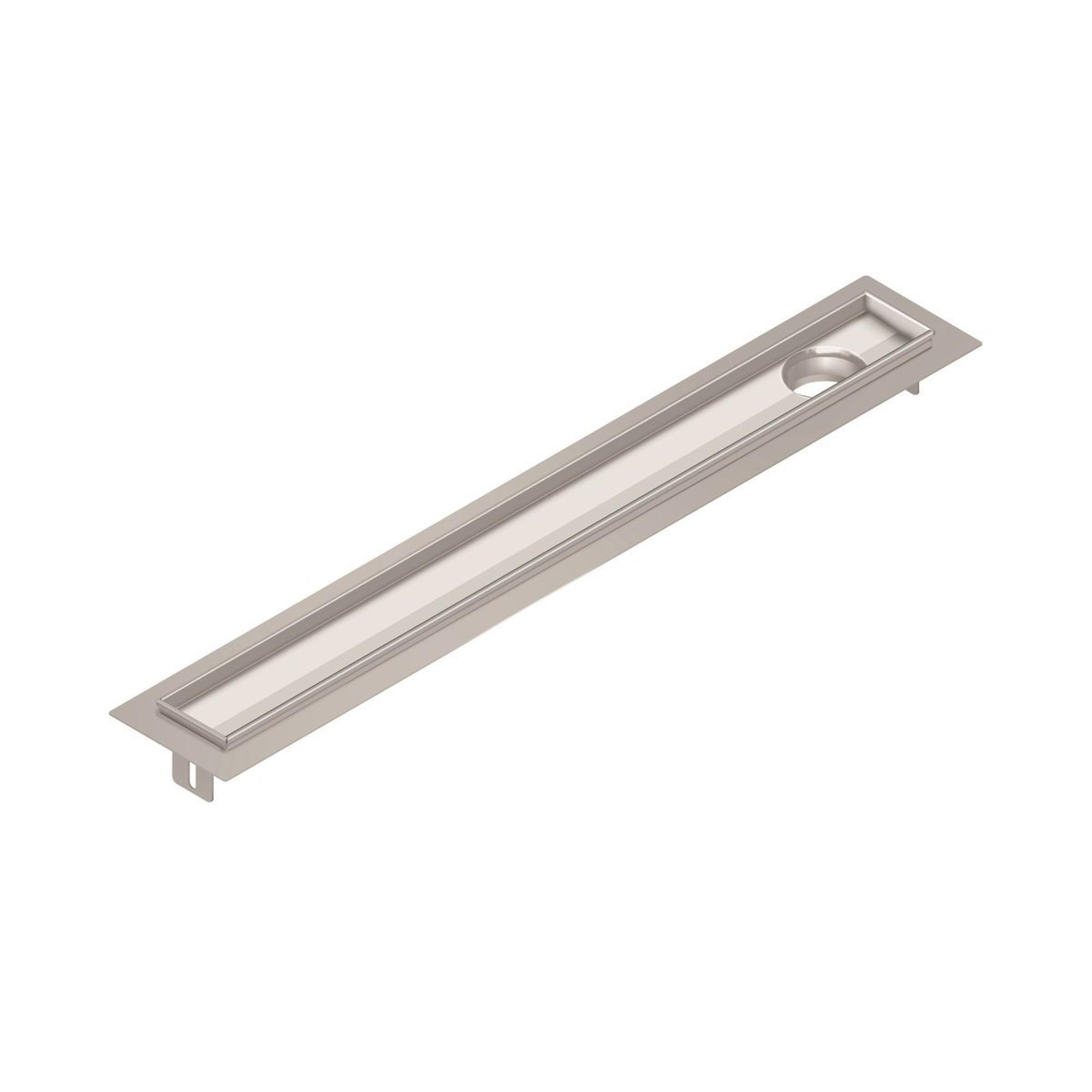 Aco FlexDrain E ShowerDrain Caniveau de douche en acier inoxydable rehausseur excentré avec bride périphérique 687mm (sans grille/corps de siphon/obturateur anti-odeurs) avec sortie verticale