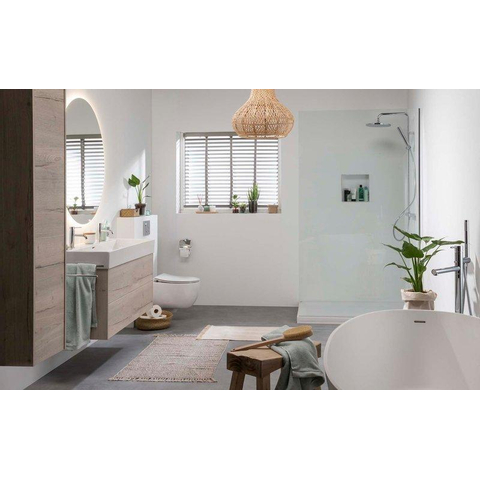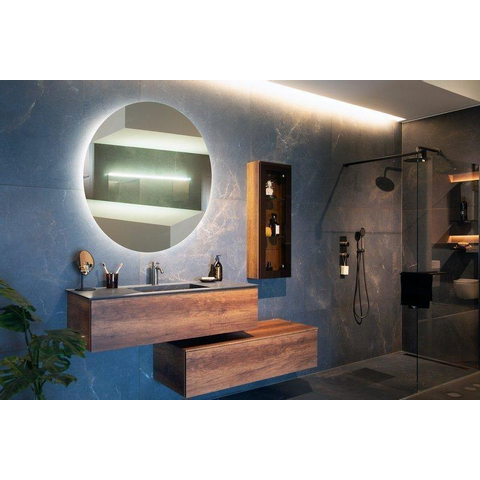 Ce miroir élégant de Plieger a un diamètre de 120 cavec Pour déterminer la bonne taille du miroir, nous vous conseillons d'utiliser le meuble de salle de bain comme référence. En maintenant la même largeur, le meuble de salle de bain et le miroir forment un bel ensemble. Si vous ne parvenez pas à garder la même taille de miroir, notre conseil est de choisir un miroir légèrement plus étroit. Le miroir peut être facilement fixé au mur.