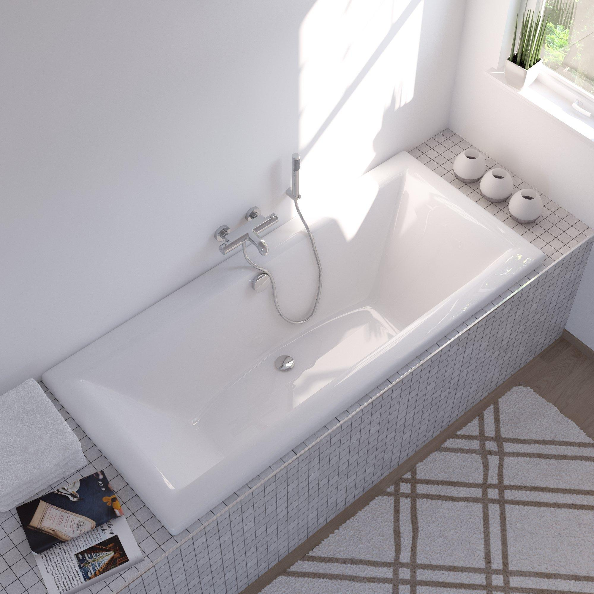 Plieger Corfu baignoire duo 180x80cm acrylique 48cm extra profonde avec pieds blanc inclus évacuation de baignoire et combinaison trop-plein avec bonde et câble 85cm chrome