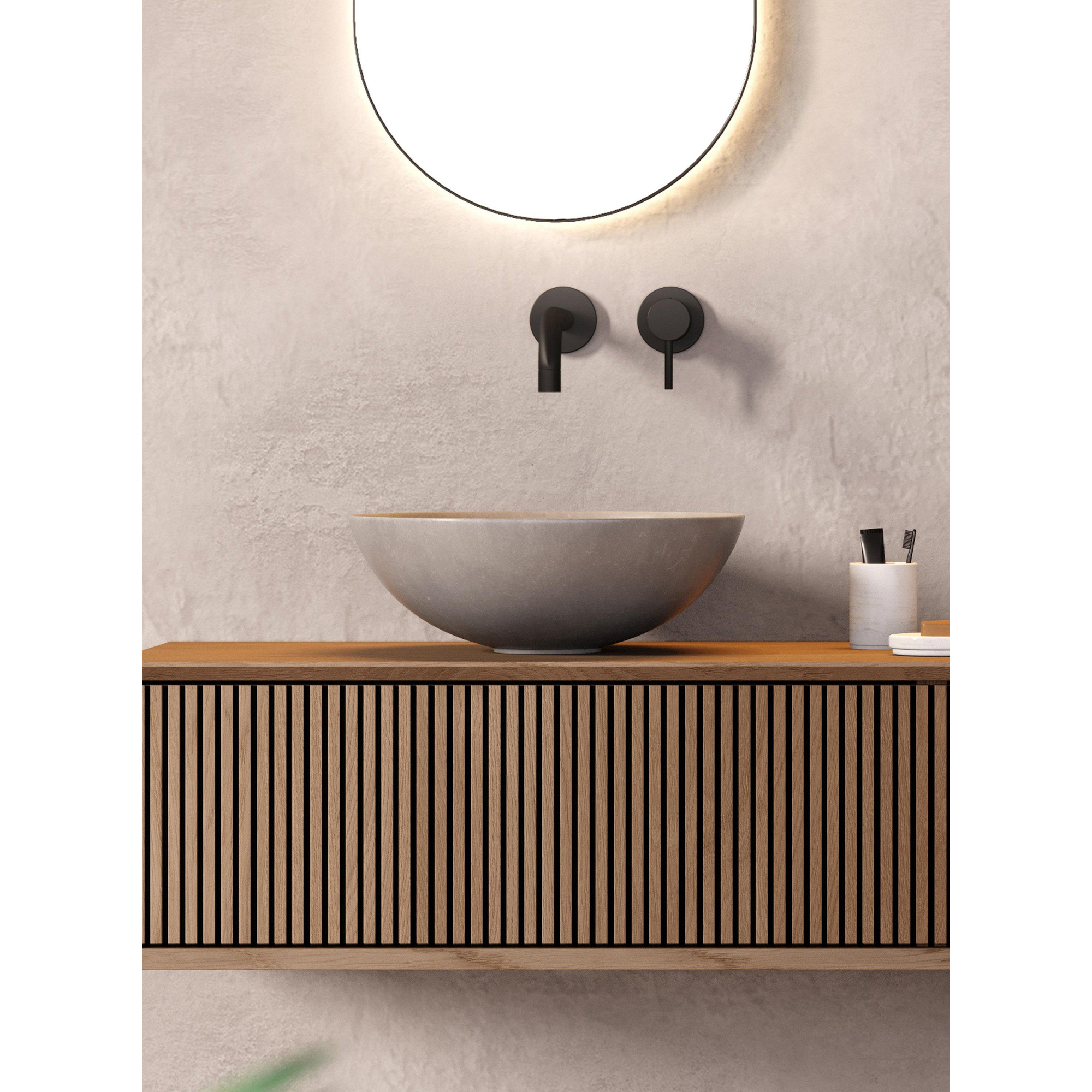 La Looox Ceramic raw vasque à poser dégage une apparence moderne grâce à son design minimaliste et sa finition soignée. La combinaison de la forme ronde et de la couleur gris foncé crée un look contemporain qui s'intègre parfaitement à un style de salle de bains moderne. Cette vasque n'est pas seulement fonctionnelle, mais constitue également un élément décoratif qui donne à la pièce une apparence tendance.