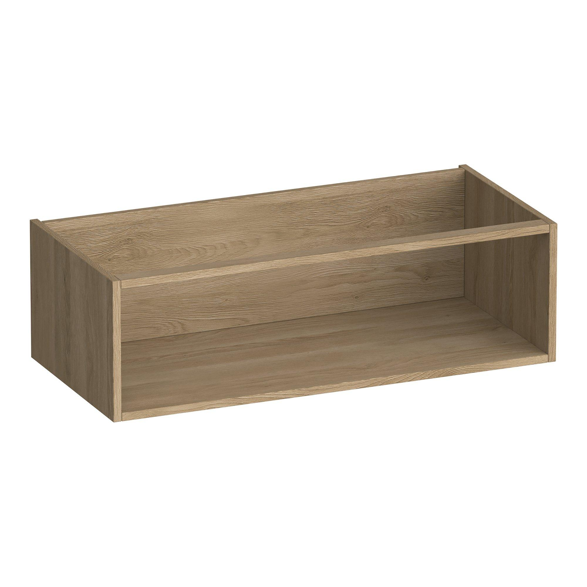 La couleur Legno Calore mat de la gamme de teintes bois confère immédiatement à votre salle de bains une apparence chaleureuse et naturelle. La structure bois s’accorde parfaitement avec les tendances telles que les salles de bains spa et bien-être, mais se combine aussi très bien avec des robinets noirs, des vasques blanches ou une paroi de douche industrielle. Grâce à la finition mate, la surface paraît sobre et chic, sans brillance ni reflet, ce qui apporte davantage de sérénité, surtout dans une salle de bains plus petite. Comme le caisson et la façade sont tous deux réalisés dans la même teinte bois, la colonne latérale forme un bloc homogène et apaisant dans votre meuble de salle de bains. Vous créez ainsi facilement un look harmonieux, même si vous combinez différents éléments.