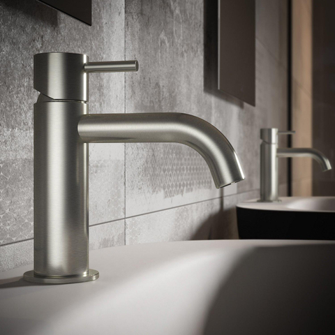 La finition sur le bouton de commande de la série Archie a le même reflet léger qu'un disque vinyle et donne au robinet cette touche supplémentaire. Dans la bonne lumière, ce robinet brille comme aucun autre. Avec la finition brossée de haute qualité, c'est vraiment un « accroche-regard » dans chaque espace.