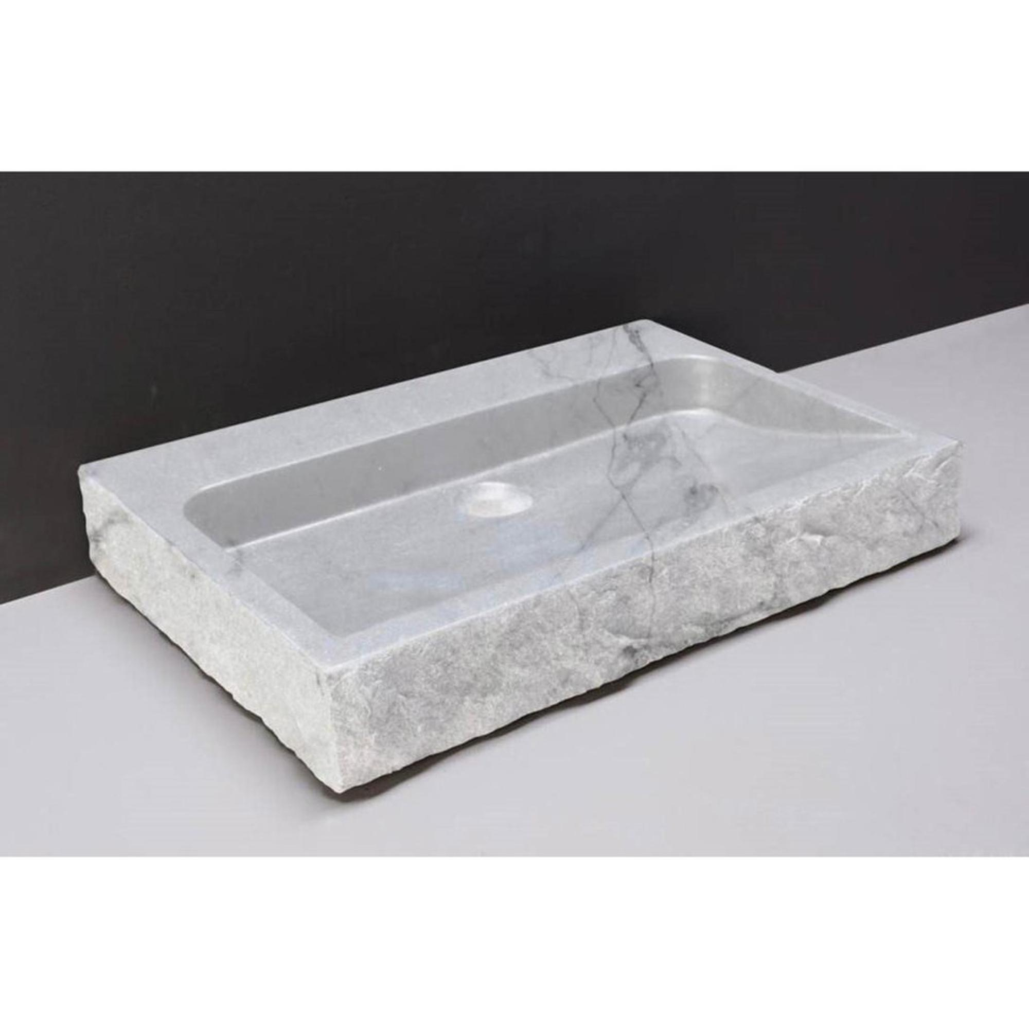 Forzalaqua Palermo lavabo 80,5x51,5x9cm Rectangulaire 1 trou de robinet Pierre naturelle Carrara poli & taillé