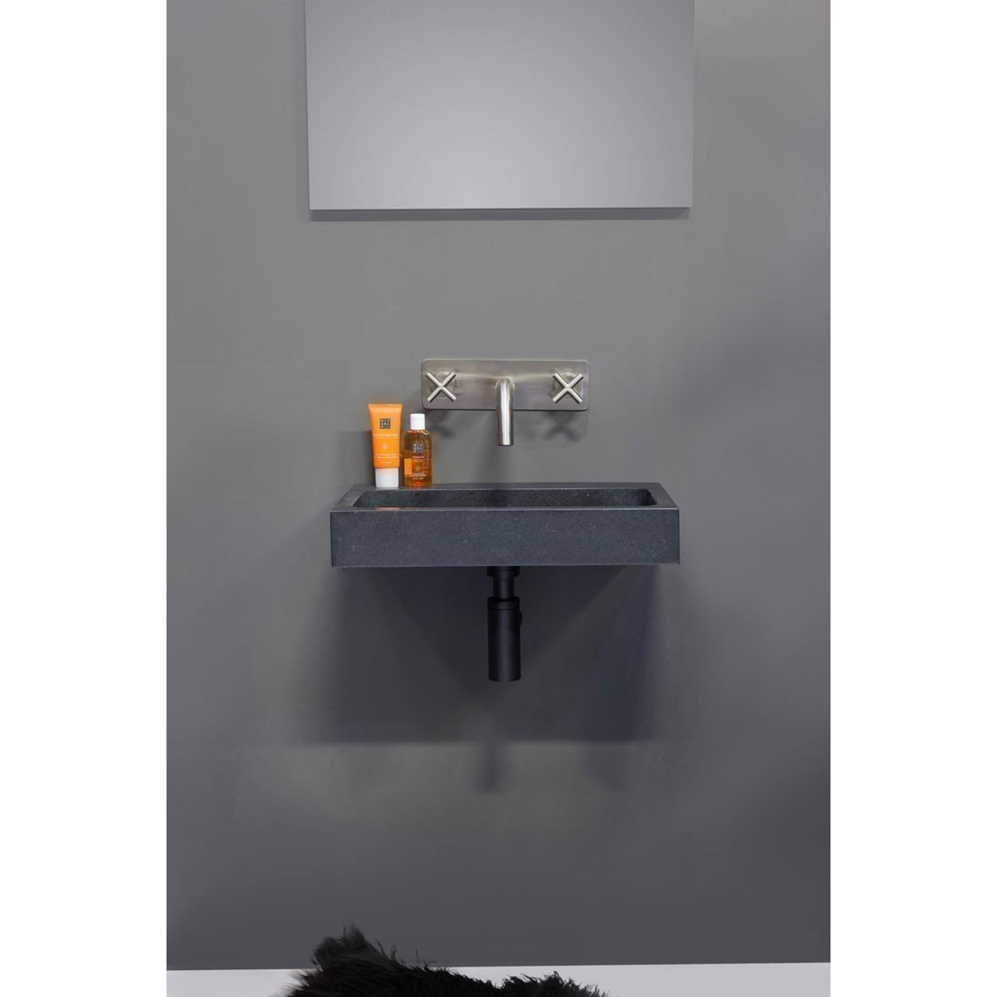 Ce lavabo compact en pierre naturelle est idéal si vous disposez de peu d’espace mais ne voulez faire aucune concession sur l’apparence et la qualité. Grâce à son format élancé, il s’intègre parfaitement dans une petite salle de bains, un espace toilettes ou une niche étroite, tandis que la cuve rectangulaire offre tout de même suffisamment de place pour vous laver confortablement les mains. Le granit adouci a un aspect calme et luxueux, avec une surface mate légèrement satinée qui se marie très bien avec des robinets noirs, des accents en inox ou au contraire un bois chaleureux. Comme il n’y a pas de trou de robinetterie, vous pouvez choisir vous-même un beau mitigeur mural ou encastré et ainsi définir le style de votre salle de bains, du moderne épuré au chic hôtelier intemporel. Si vous recherchez une solution élégante et durable pour un espace compact, il s’agit d’un choix particulièrement malin et élégant.