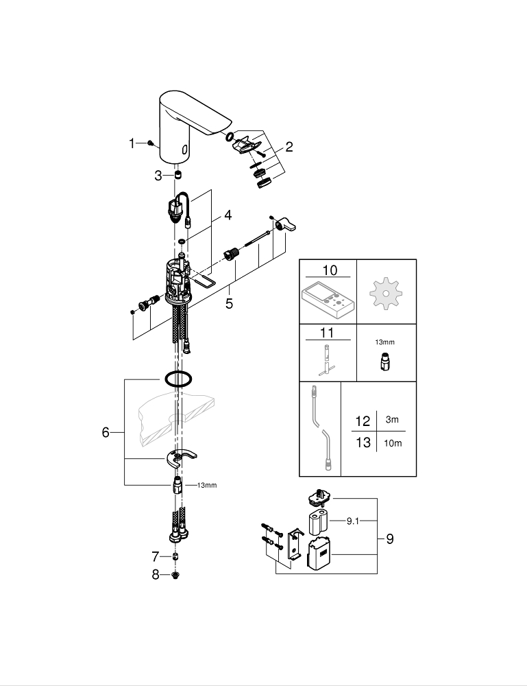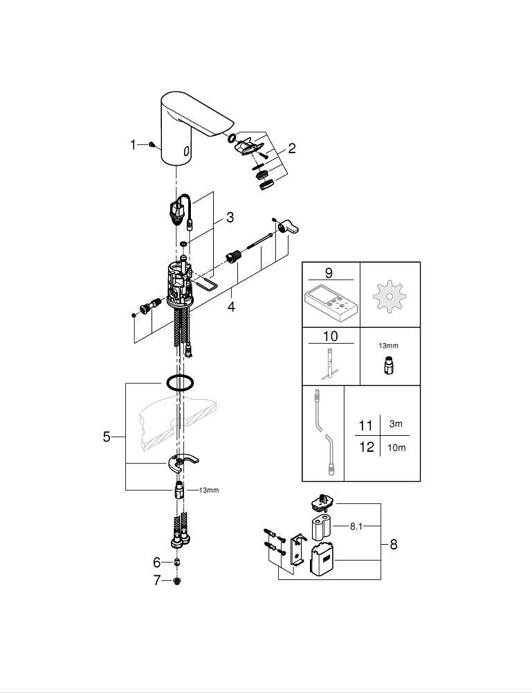 GROHE Bau Cosmopolitan Robinet lavabo électronique avec infrarouge et mélange avec pile 6V Chrome