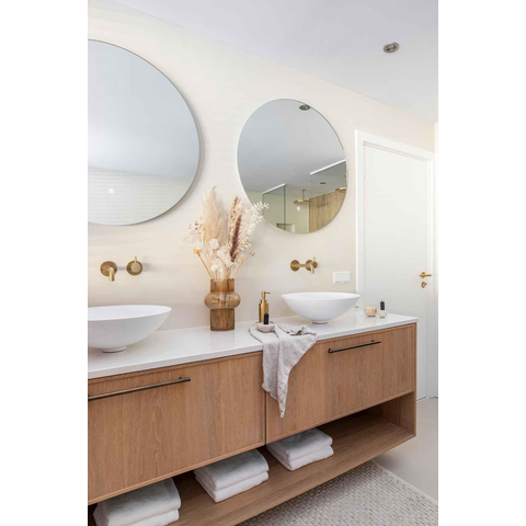 La manette de commande de ce robinet mitigeur encastré pour lavabo est conçue de manière ergonomique, afin que vous puissiez régler le débit d'eau et la température d'un geste fluide. Grâce à la fixation murale, le plan de lavabo reste libre de pied de robinet et de joints de silicone, ce qui facilite l'élimination du calcaire et des résidus de savon et permet de conserver longtemps un bel aspect. La finition PVD est particulièrement résistante à l'usure et mieux protégée contre les rayures et la décoloration, de sorte que le robinet conserve son aspect laiton brossé, même en cas d'utilisation quotidienne intensive. Cela fait de ce robinet encastré une solution pratique et peu contraignante pour toute salle de bains moderne.