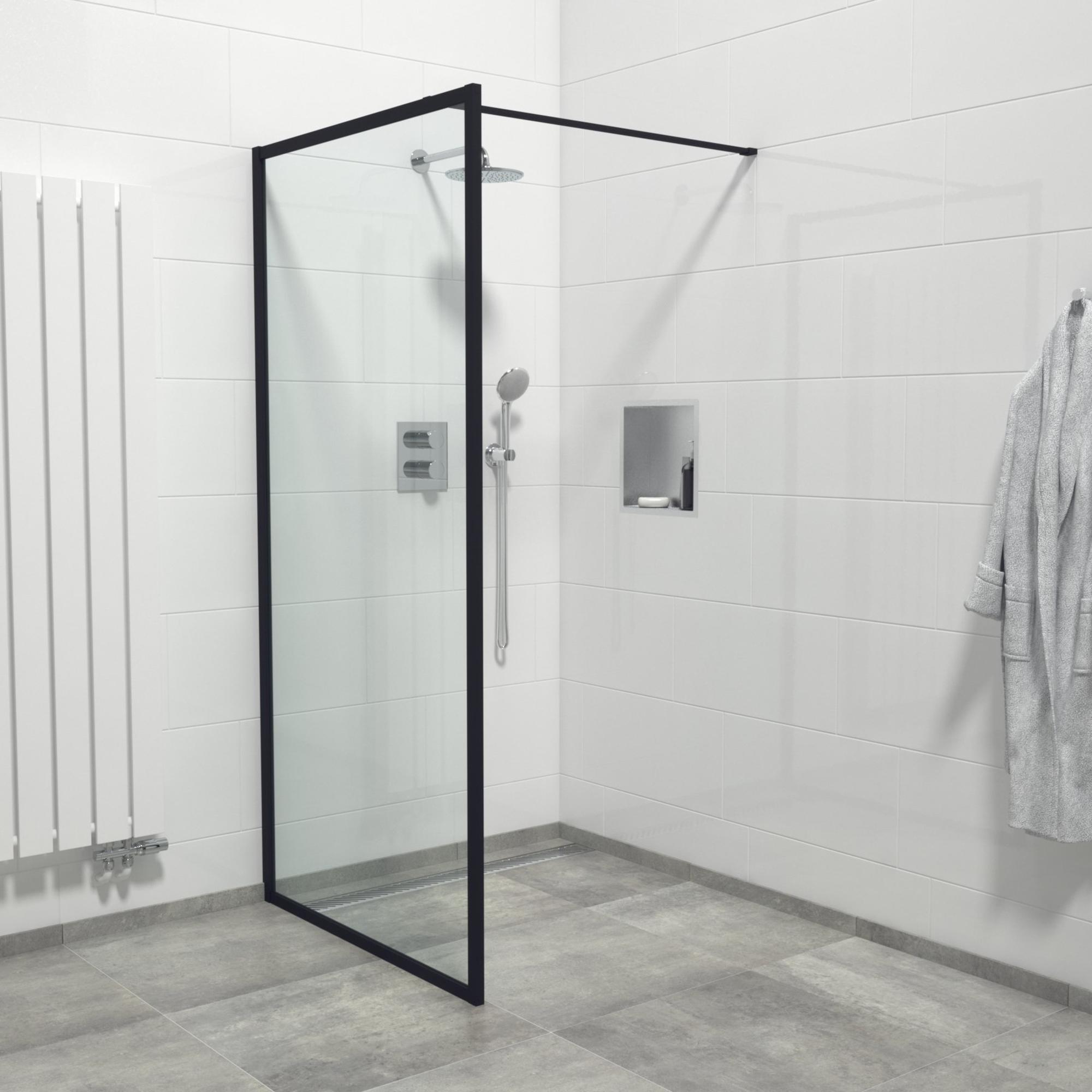Le cadre noir mat autour de la paroi de douche offre un aspect contemporain et épuré qui s'harmonise parfaitement avec les dernières tendances en matière de salle de bains. Cette couleur et finition apportent un accent subtil mais puissant, donnant immédiatement un coup de neuf à votre salle de bains. Le verre de sécurité clair renforce cet effet en laissant entrer la lumière de manière optimale, ce qui agrandit et rend l'espace plus accueillant. Vous profitez ainsi non seulement d'une douche fonctionnelle, mais aussi d'une pièce maîtresse élégante qui reflète votre goût personnel.