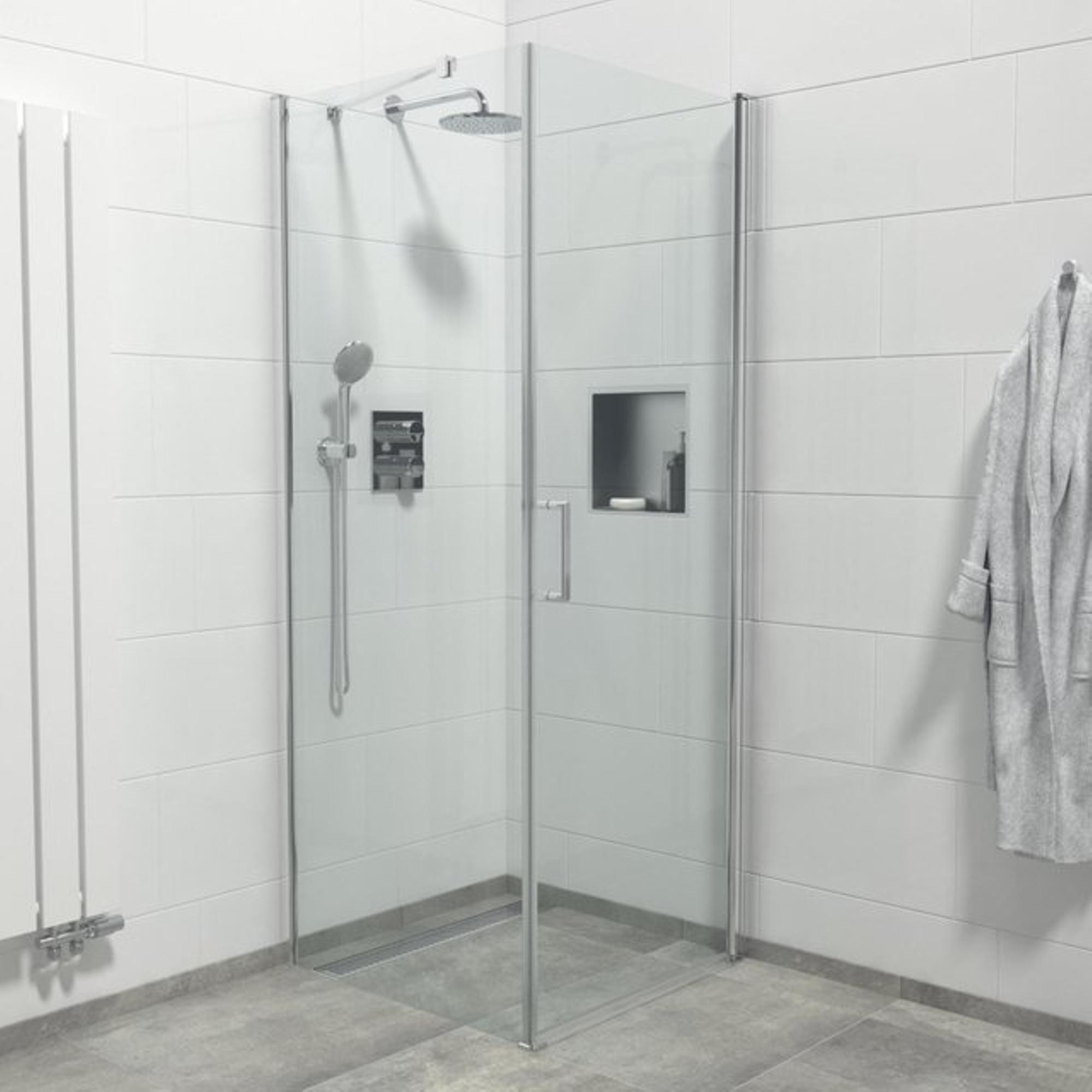Marenza Neptune Cabine de douche - 1 porte battante - Paroi latérale - 90x90x200cm - Verre de sécurité 6mm - anti-calcaire - chrome