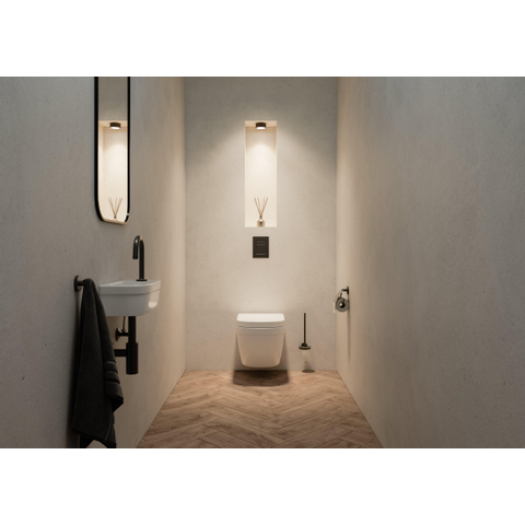 La finition hard graphite brossé confère à cette plaque de commande une apparence intemporelle et élégante. Le gris anthracite subtil s’harmonise aisément avec différents styles de salle de bains et crée une ambiance calme et moderne. Grâce au format mince de 130 x 172 mm, la plaque paraît raffinée et occupe peu d’espace, ce qui est un grand avantage surtout dans les petites salles de bains. Grâce au design épuré et aux matériaux de haute qualité, vous ajoutez un accent élégant qui offre immédiatement une mise à niveau à votre salle de bains.