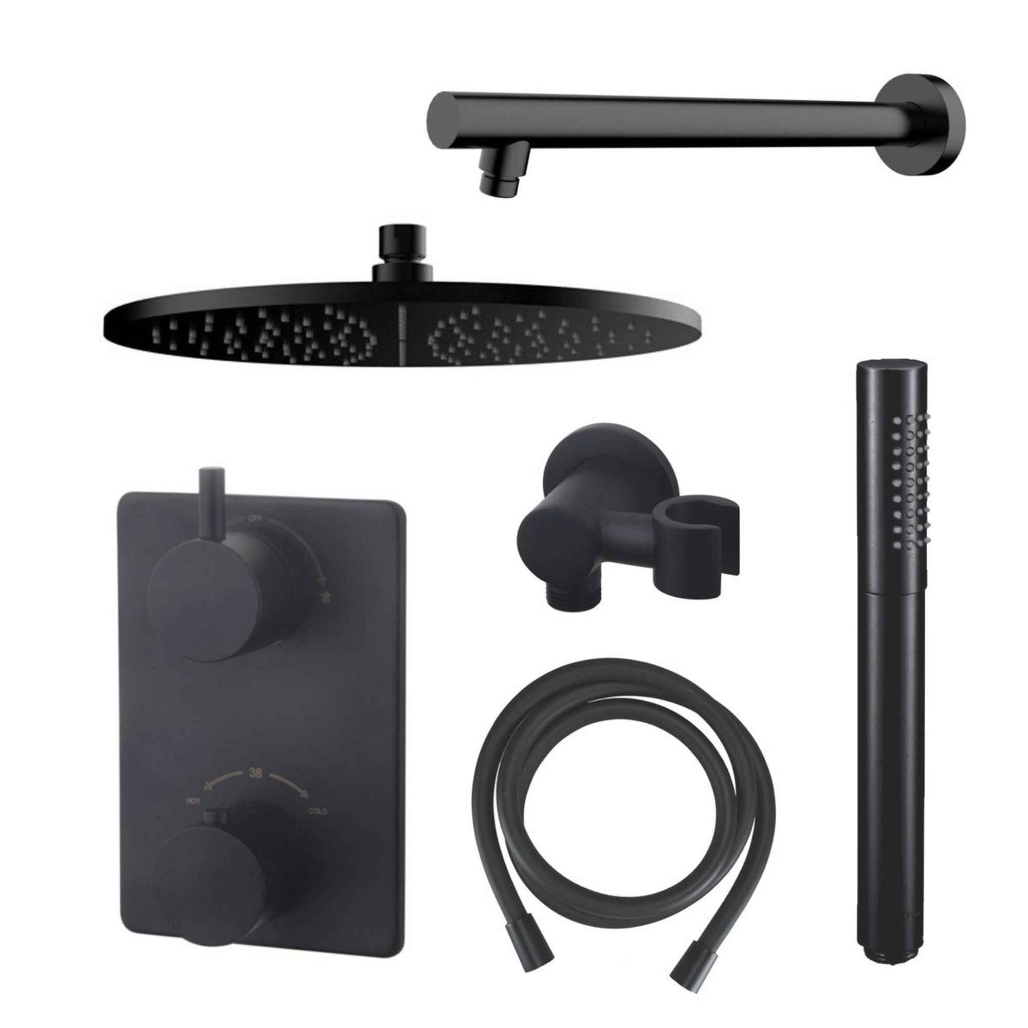 Wiesbaden Caral Ensemble de douche encastré rond avec douche de tête 30 cm bras mural douchette barre noir mat