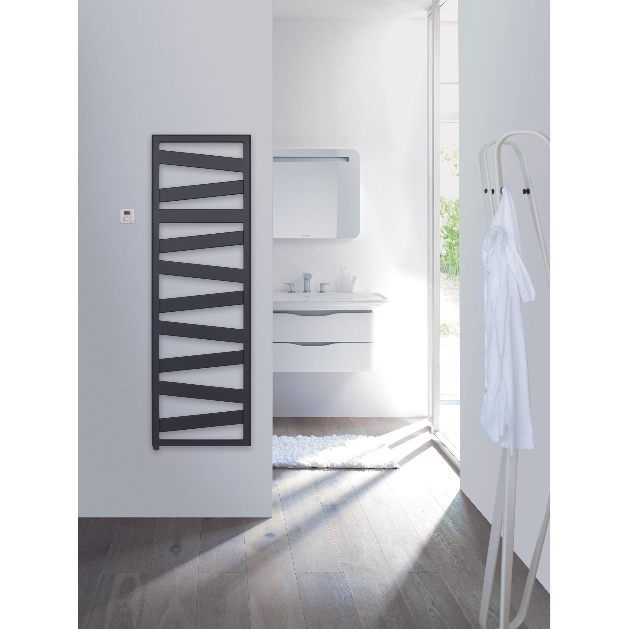 Ce radiateur chauffe rapidement et uniformément, vous permettant de toujours profiter de serviettes chaudes et d'une salle de bains confortable. Avec une puissance de 750 watts, il est suffisamment puissant pour chauffer efficacement la pièce sans gaspiller d'énergie inutilement. La connexion électrique en 230 volts facilite l'installation, même dans les salles de bains sans raccordement au chauffage central. De plus, l'utilisation d'une télécommande sans fil est possible, ce qui rend la commande encore plus facile. Vous pouvez ainsi régler la température exactement comme vous le souhaitez, sans tracas.Design épuré adapté à tous les styles de salle de bains