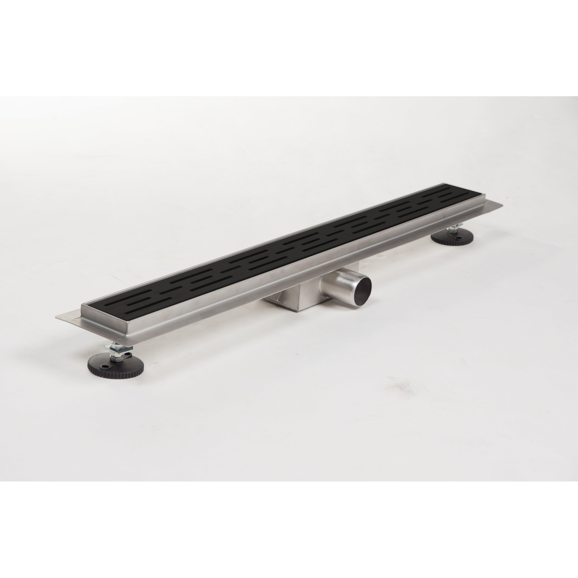 Brauer Caniveau de douche - 180x7x6.7cm - bride de sol peu profonde - sortie latérale - inox - noir mat