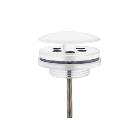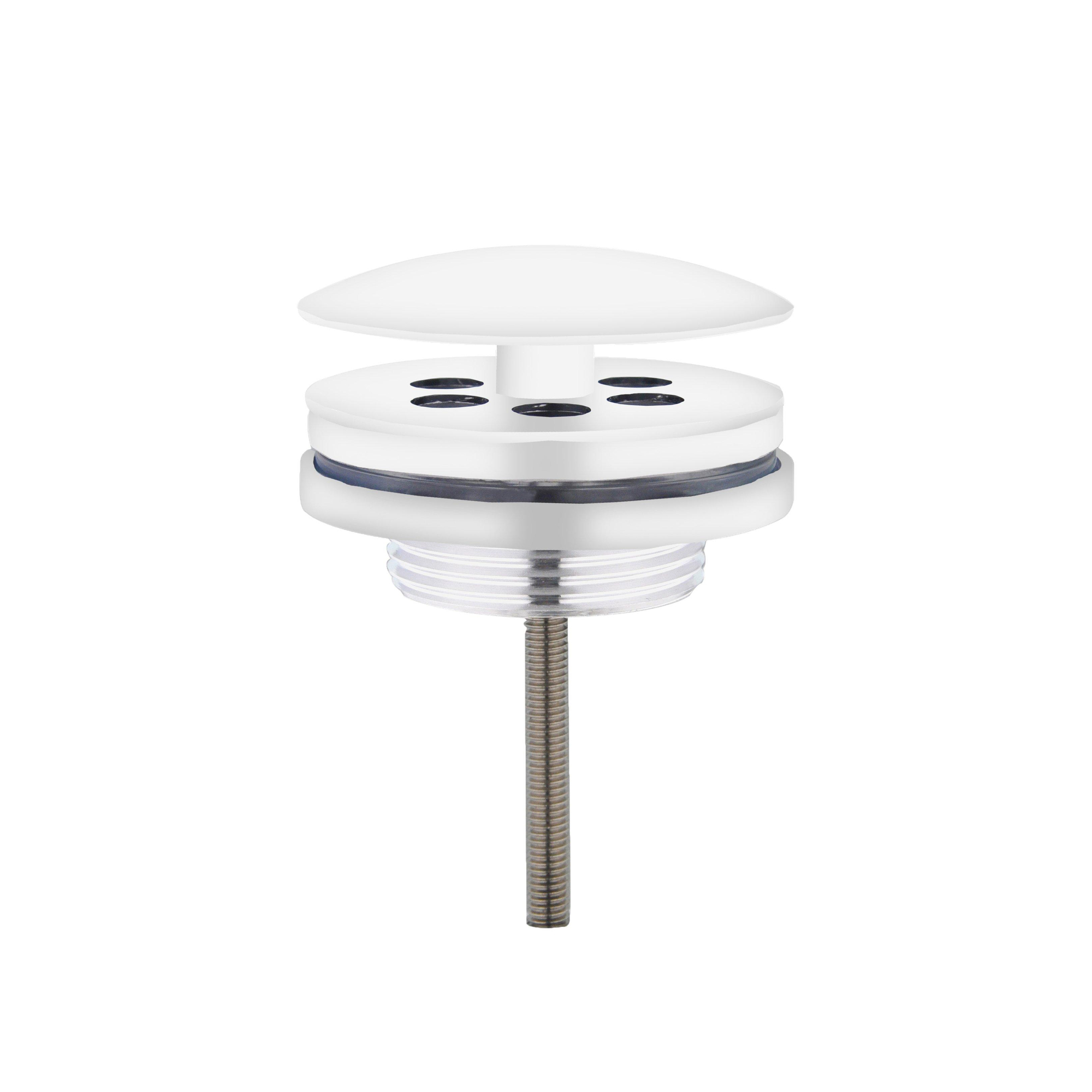 Sous la finition blanc mat se cache un noyau solide en laiton. Le laiton est un matériau largement utilisé dans le sanitaire en raison de sa durabilité et de sa stabilité de forme, même en cas d’utilisation quotidienne et de variations de température. Le raccord de 5/4 pouces (1 1/4) est une dimension très courante pour les évacuations de fontaines et de lavabos, ce qui permet de combiner facilement la bonde avec des siphons standard. La version basse la rend en outre adaptée aux fontaines compactes où l’espace est limité, tandis que le montage par le dessus est simple et rapide à réaliser.