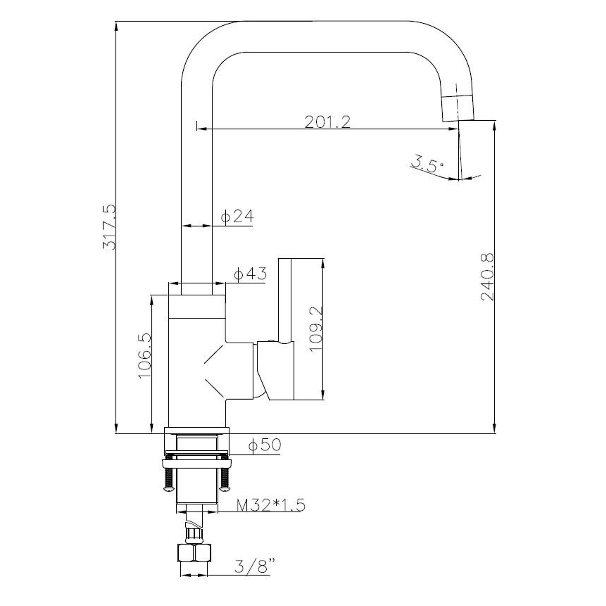 Meilleur Design Robinet de cuisine mélangeur H32 cm Nero noir mat