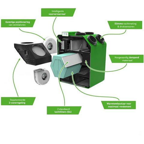 Duco WTW DucoBox Energy 570 2ZH - commande 2 zones avec chauffage - droite - 570m³/h